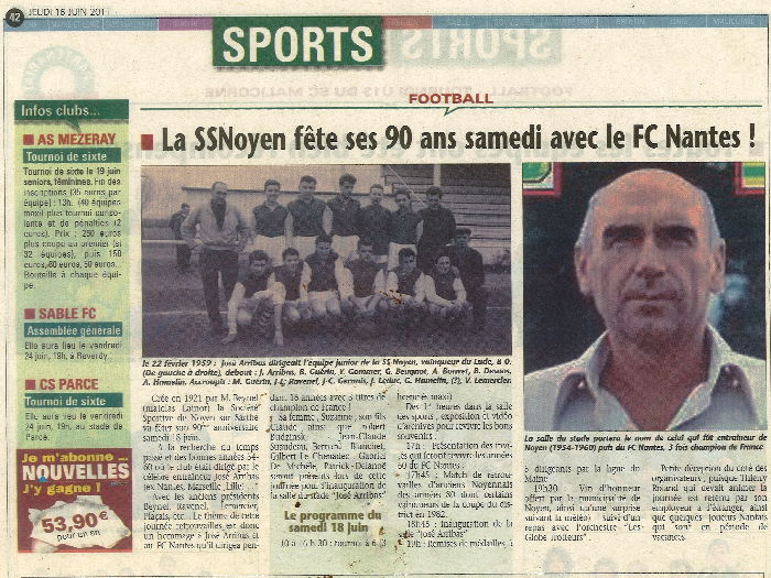 Article sur les 90 ans de Noyen sur Sarthe, club d'origine de José Arribas