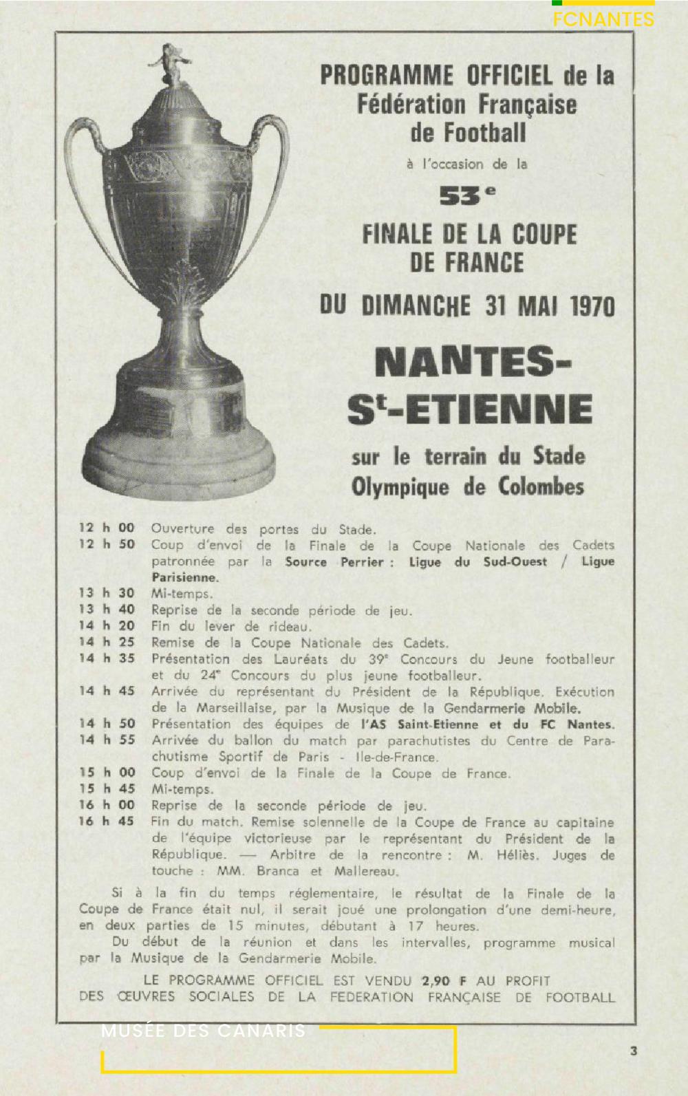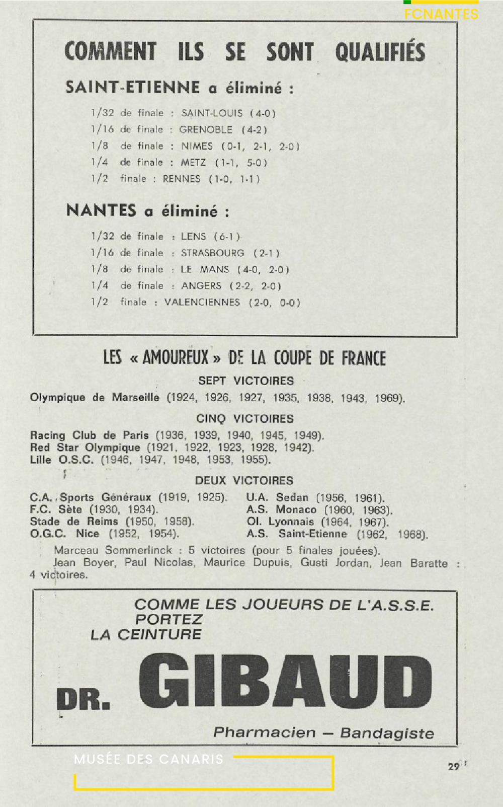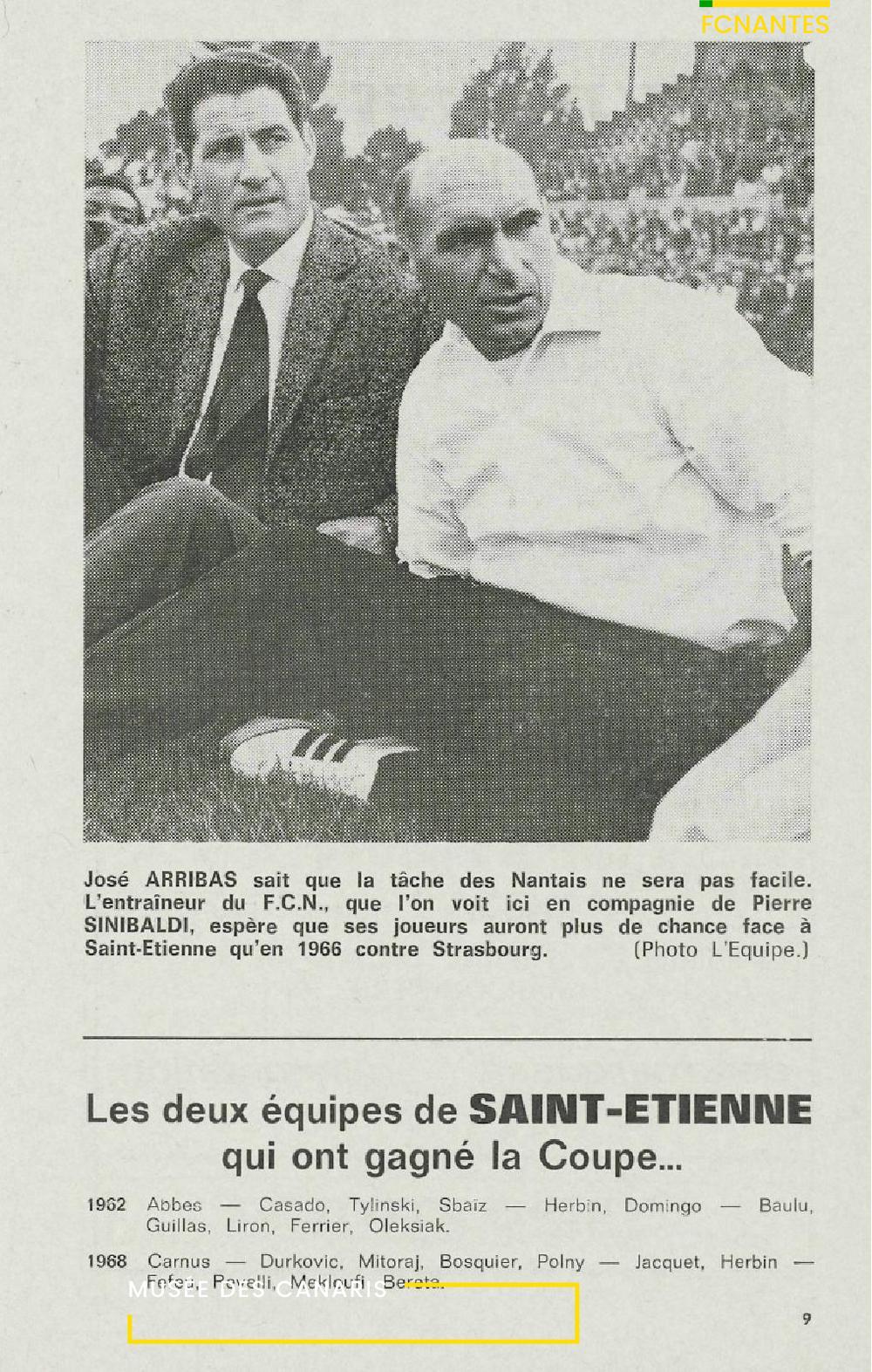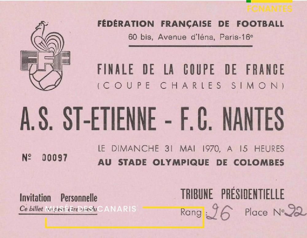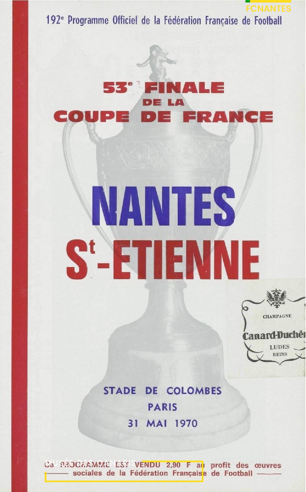 Dossier complet de la finale de Coupe de France Nantes/St Etienne en 1970.