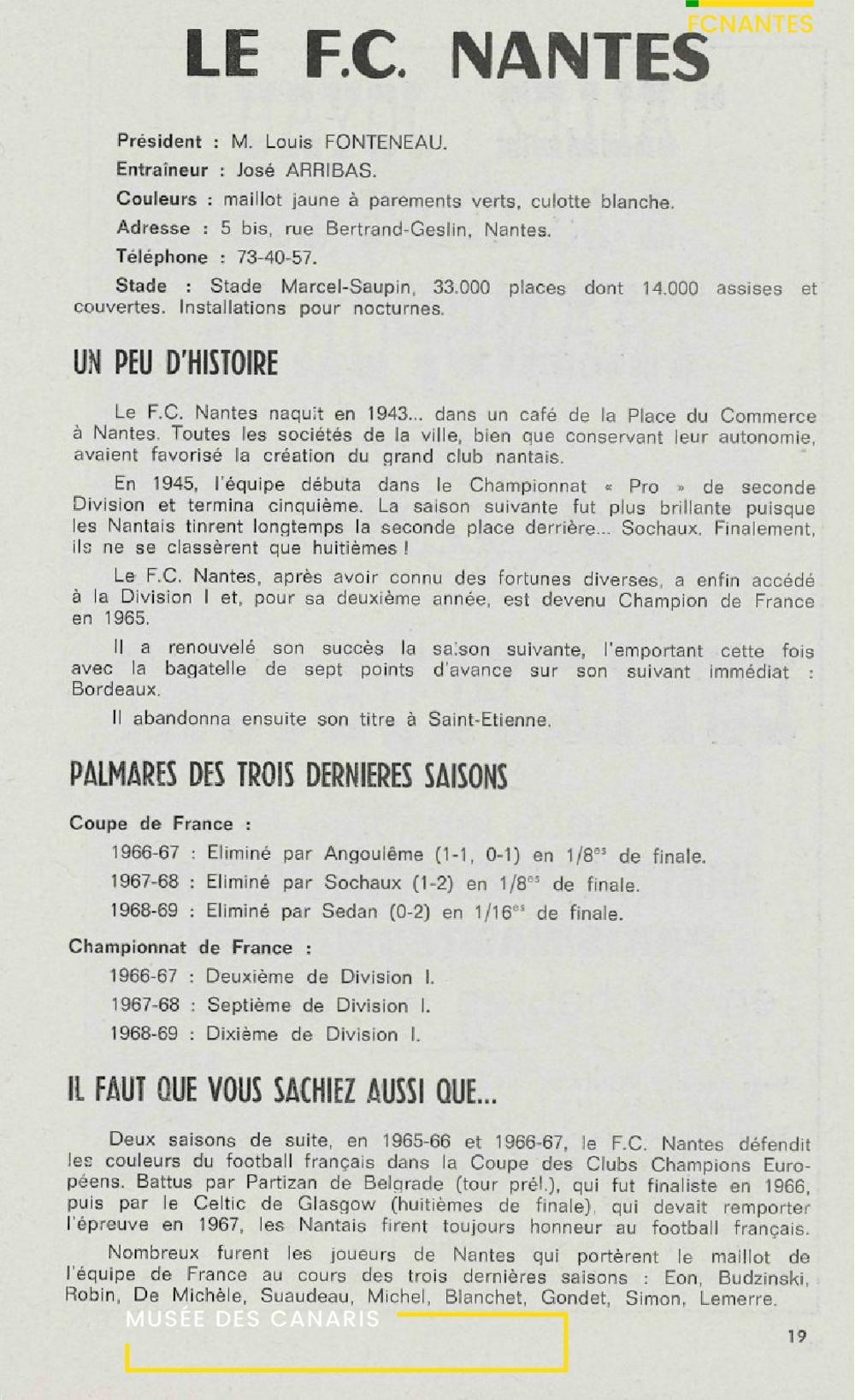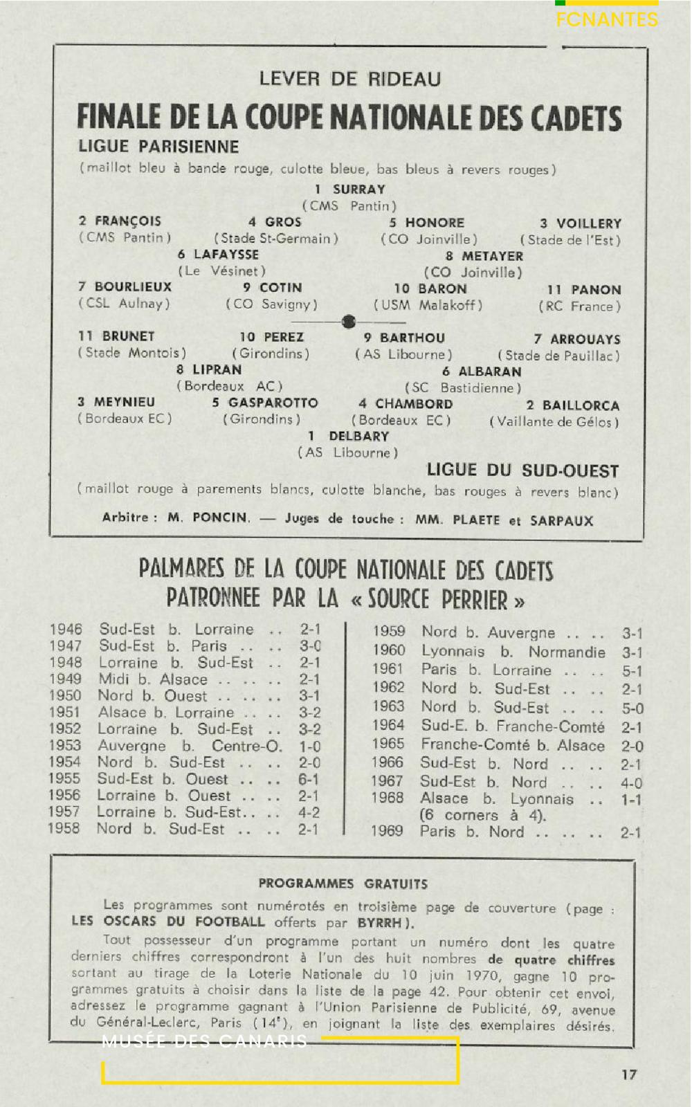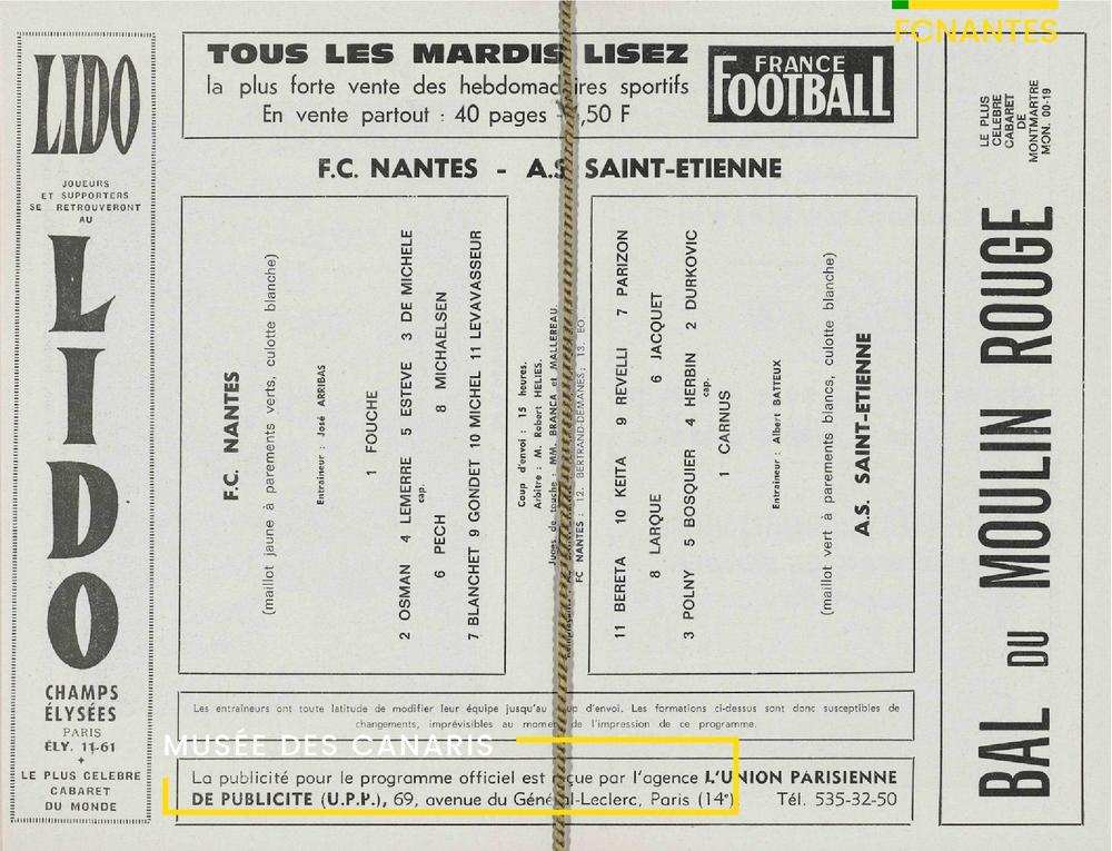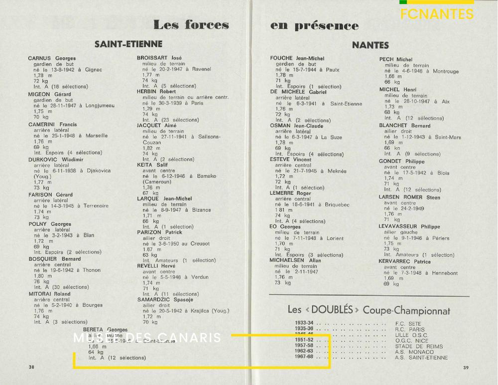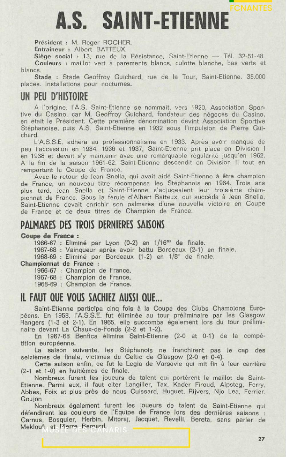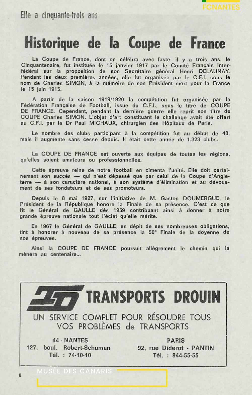 Dossier complet de la finale de Coupe de France Nantes/St Etienne en 1970.