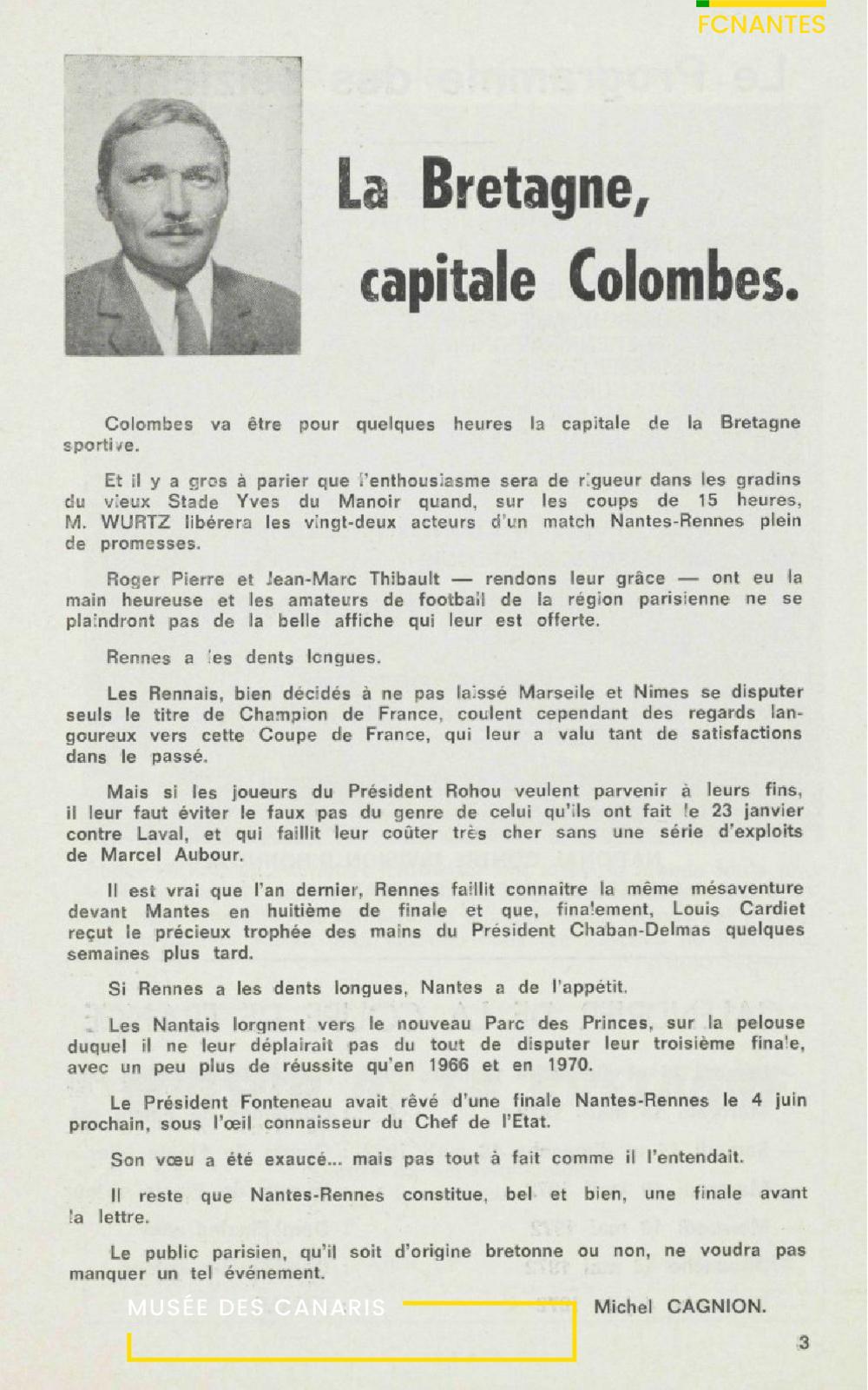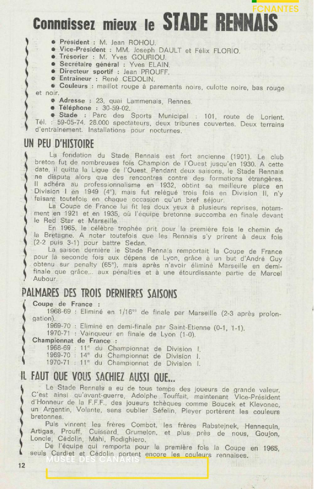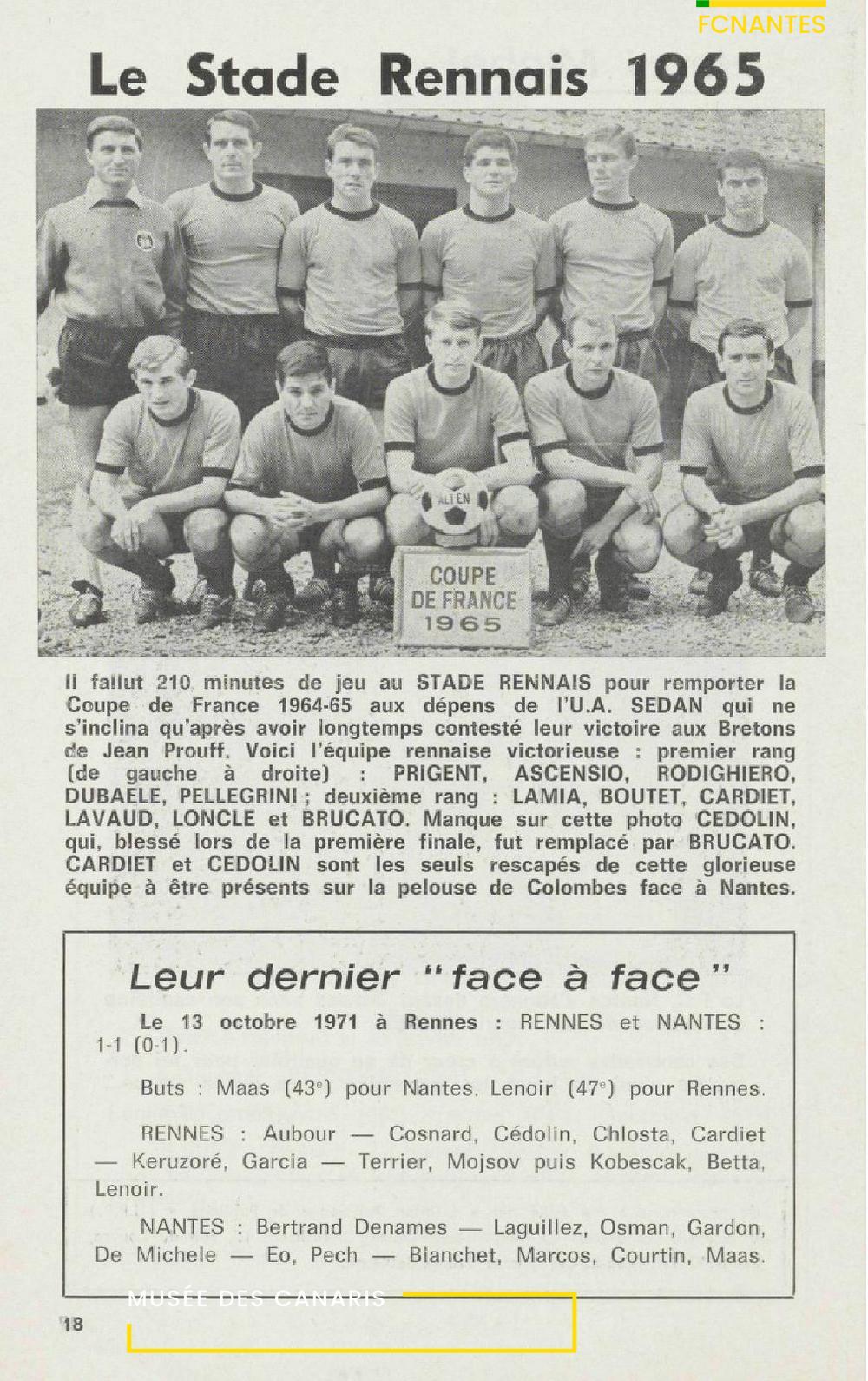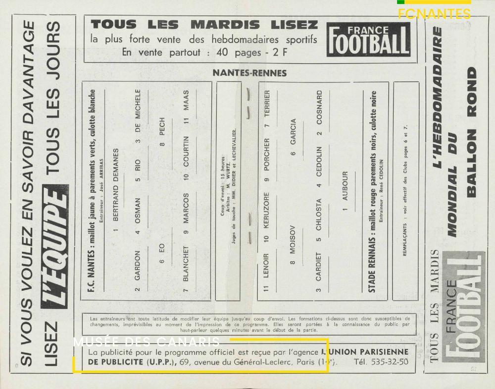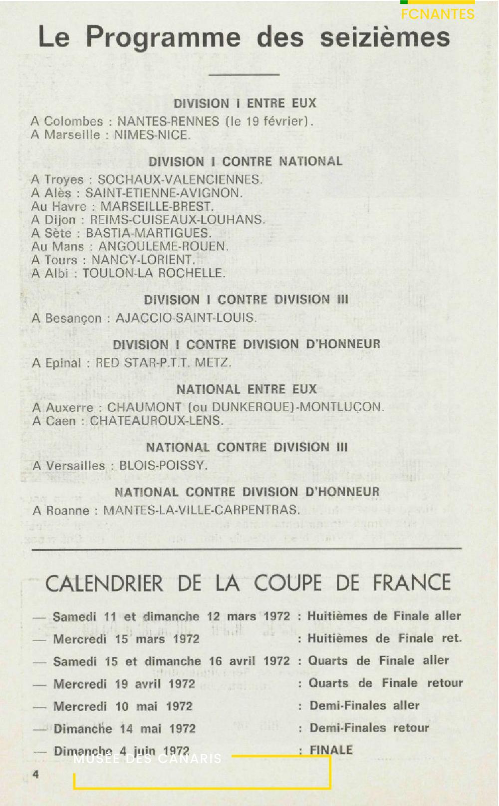 Programme du 16ème de Coupe de France, Nantes/Rennes en 1972
