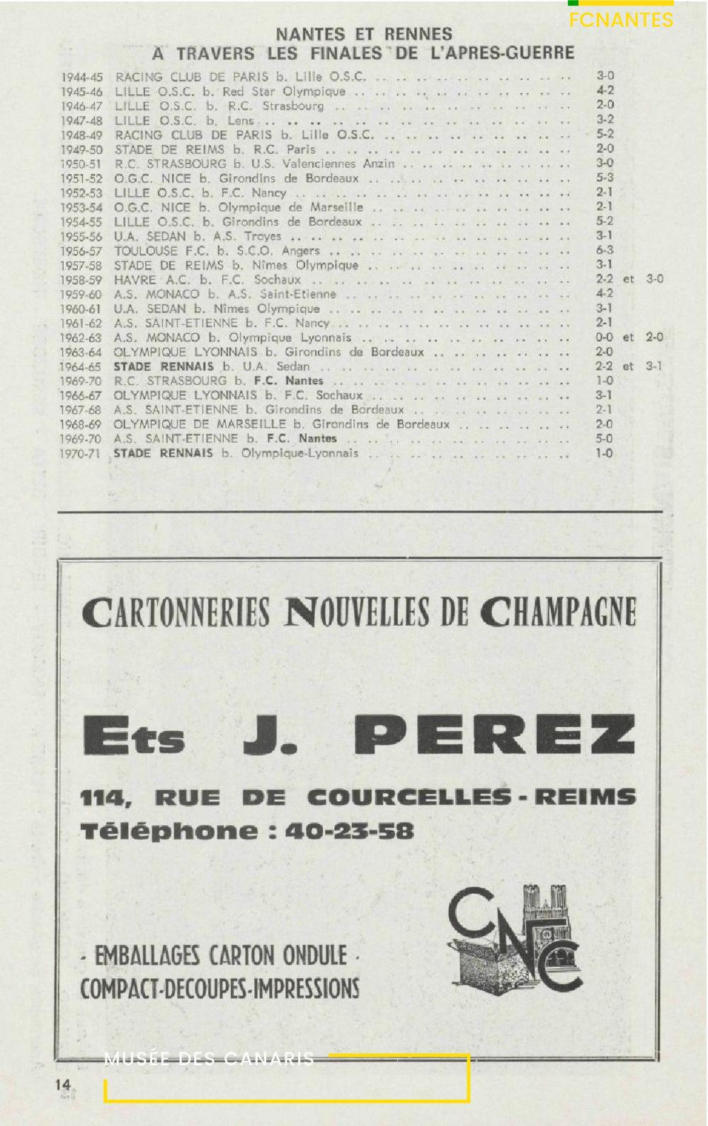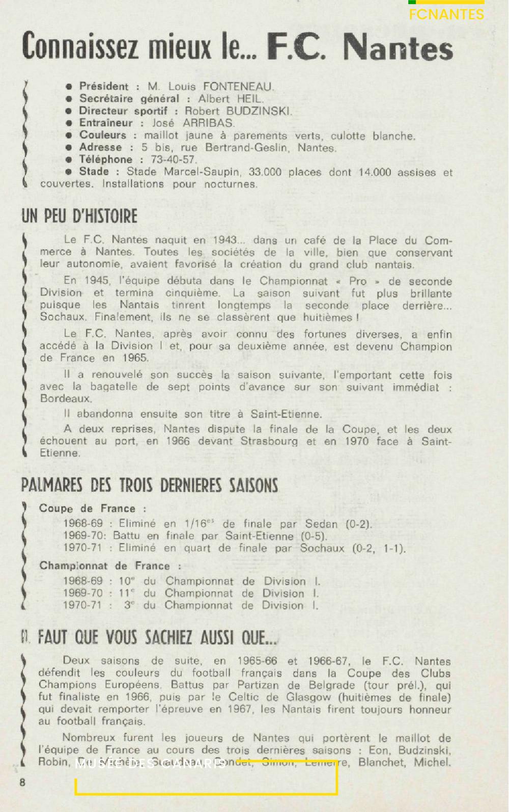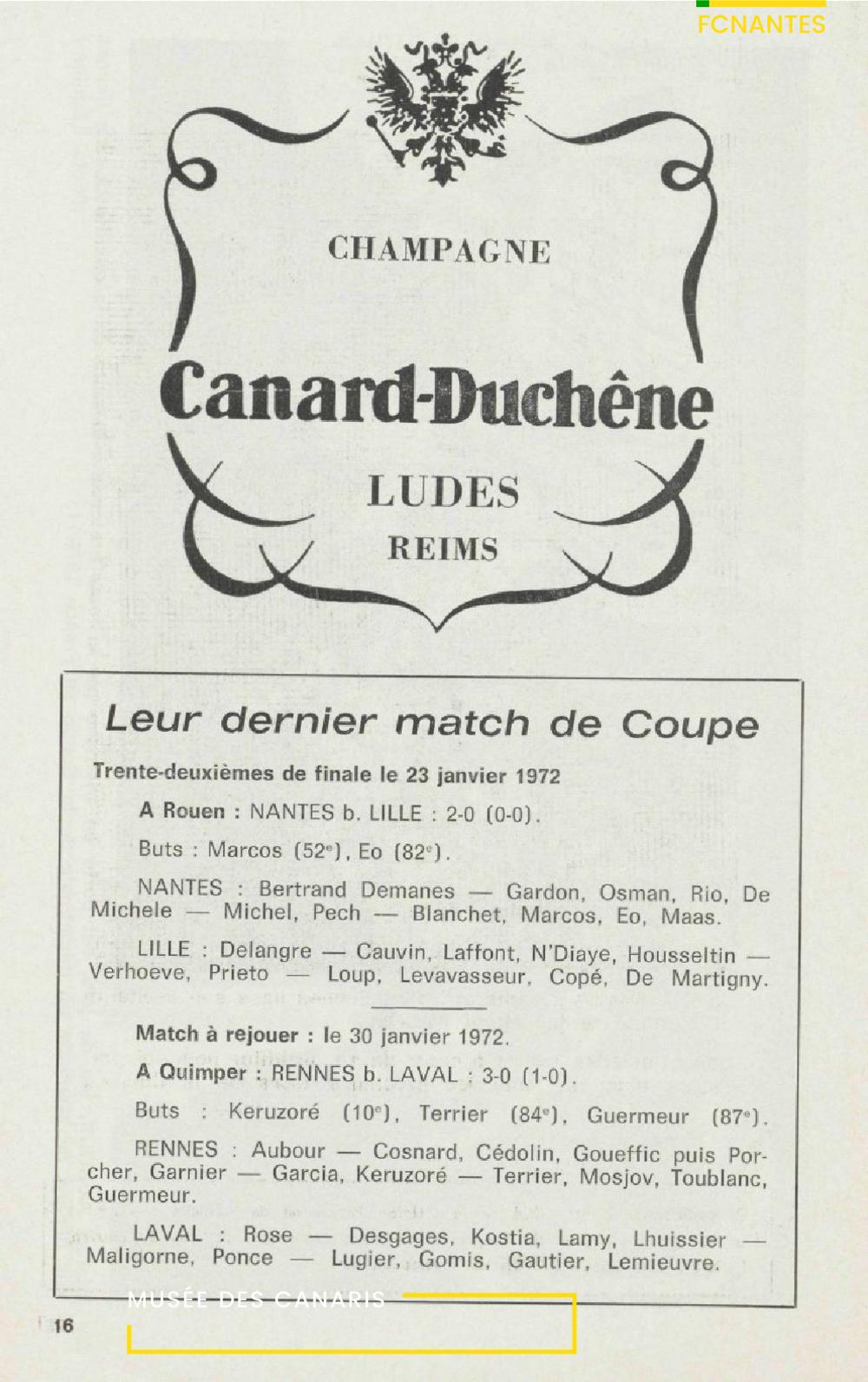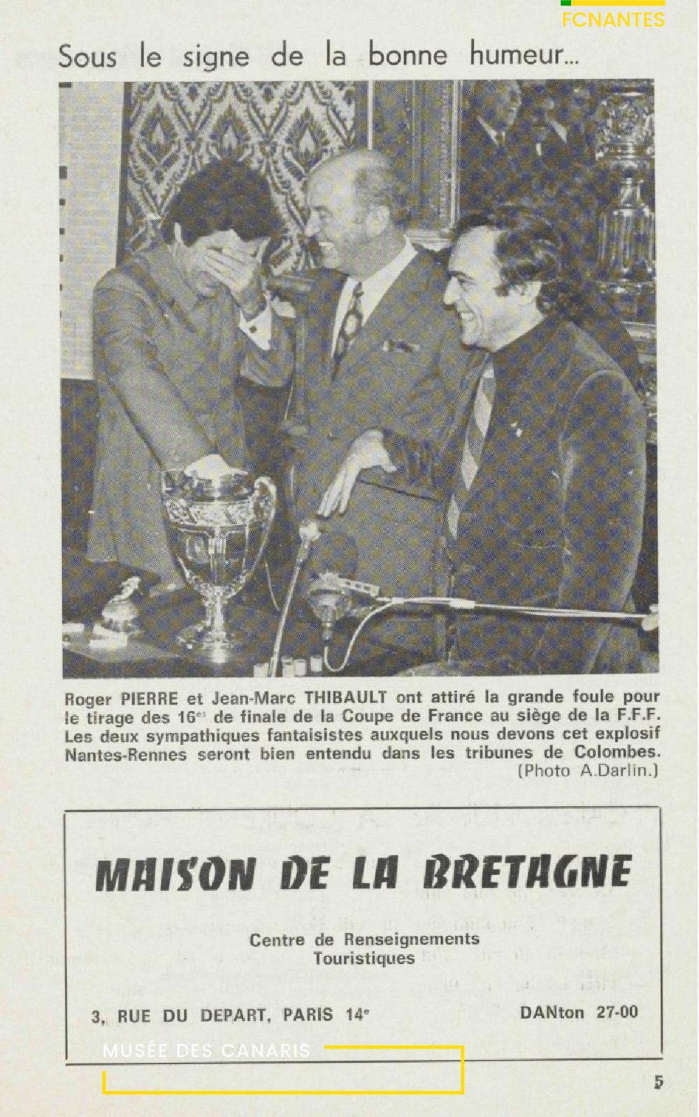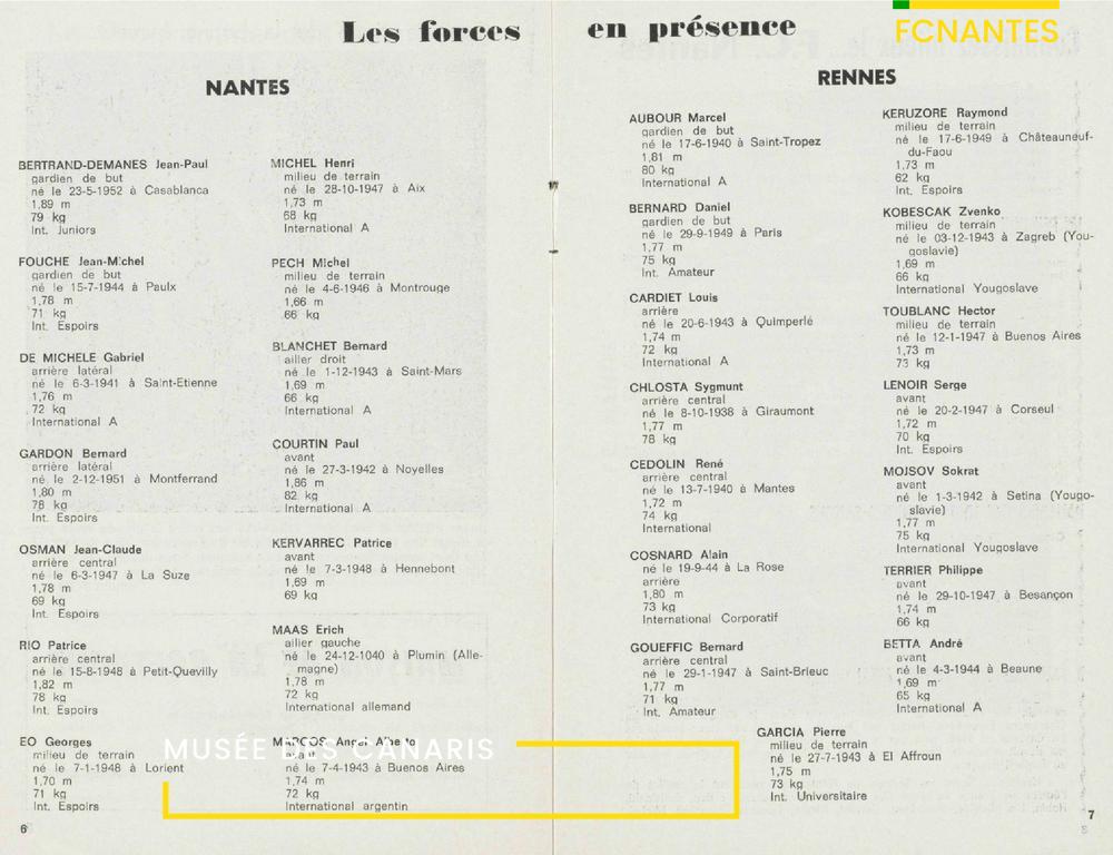 Programme du 16ème de Coupe de France, Nantes/Rennes en 1972