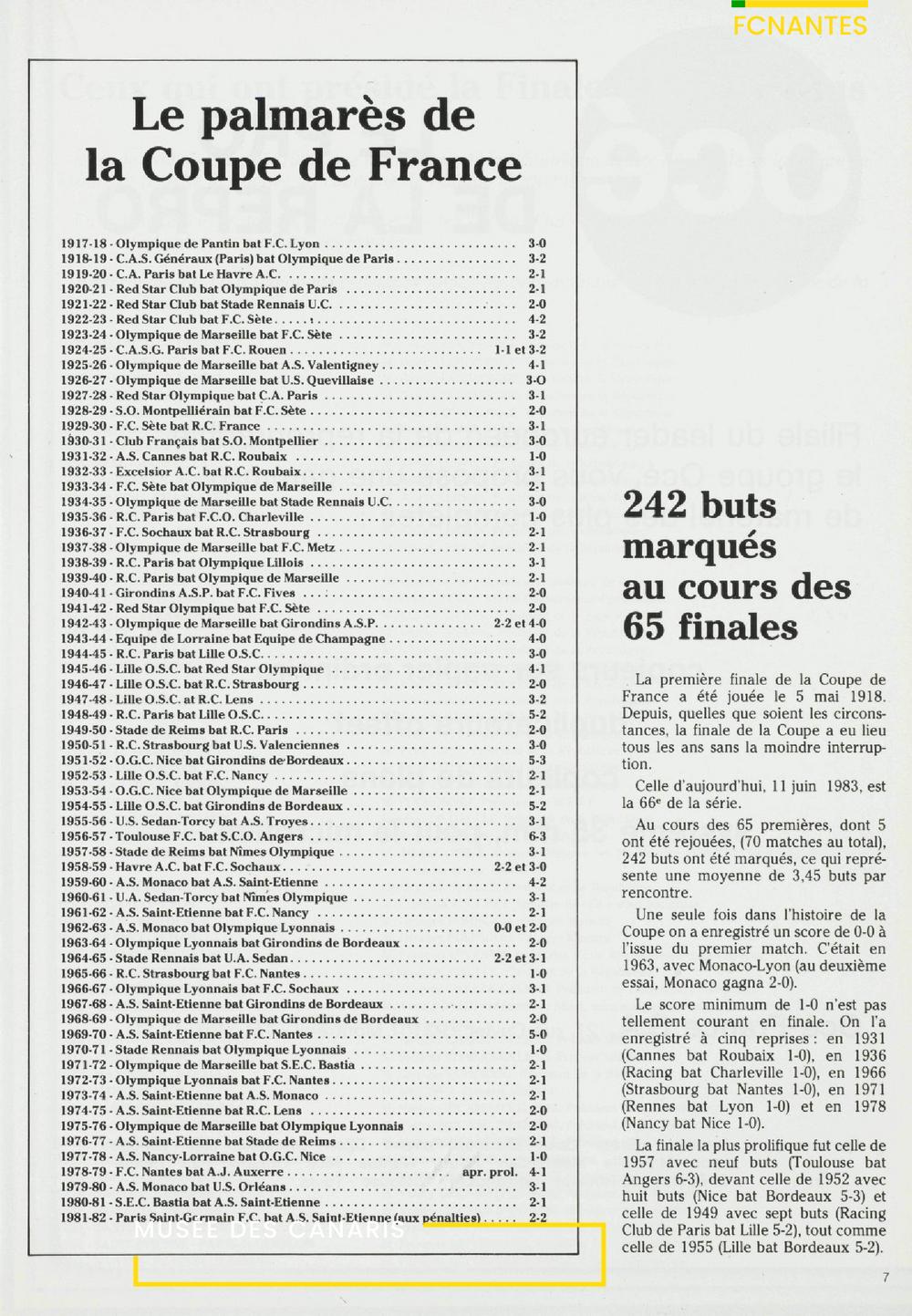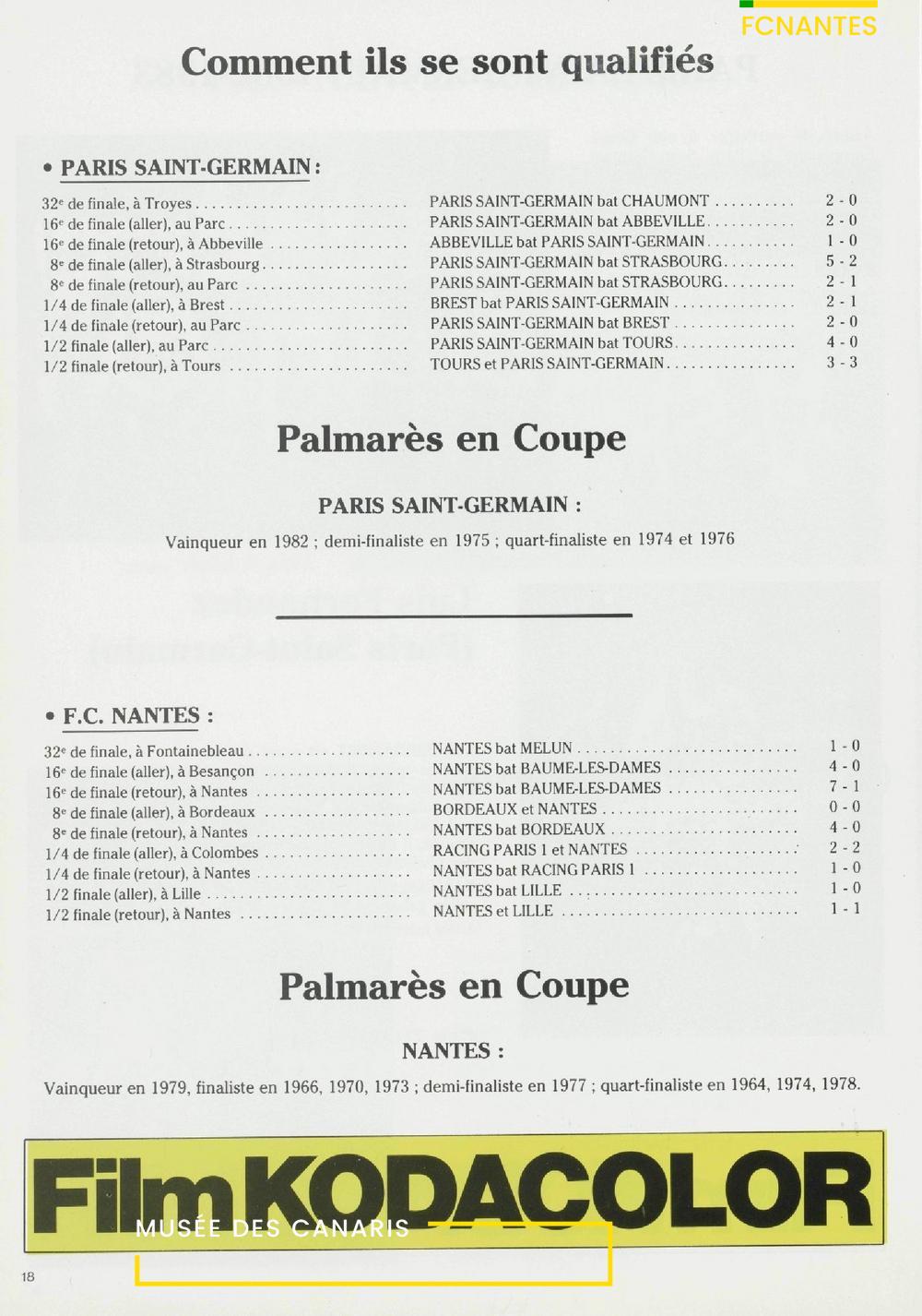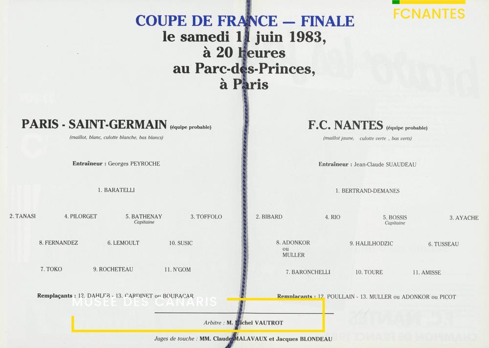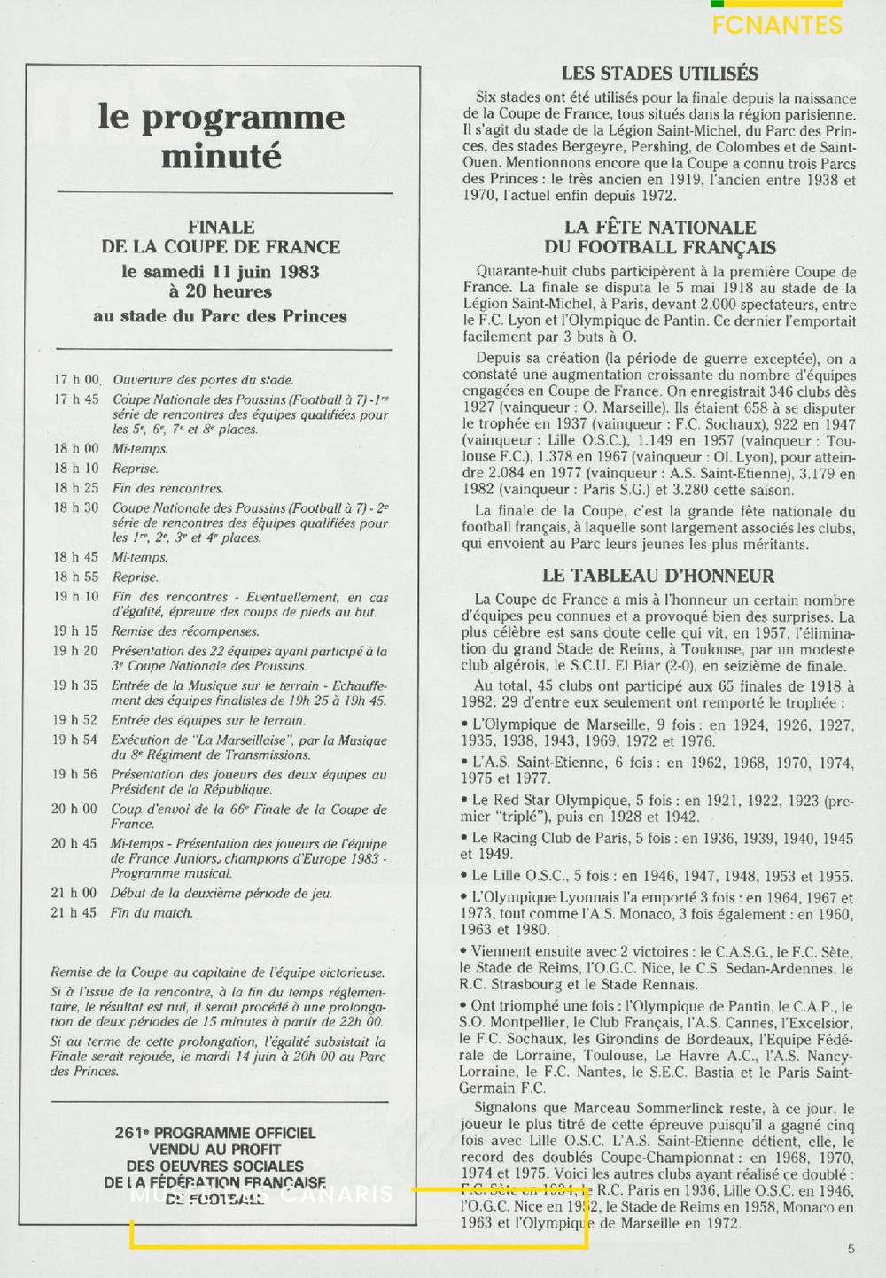 Le programme de la finale de Coupe de France, FC Nantes/Paris SG en 1983.