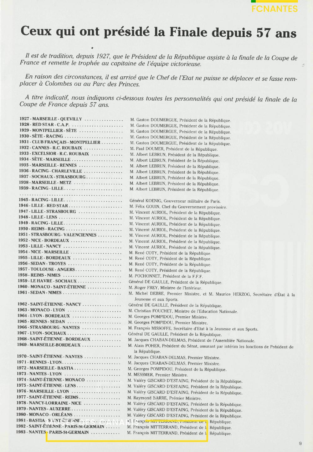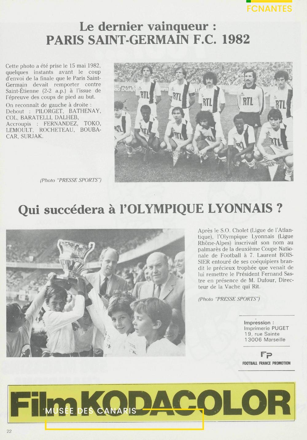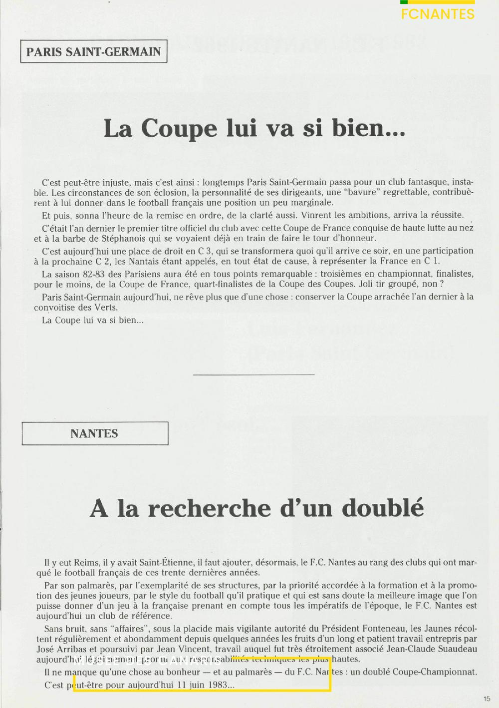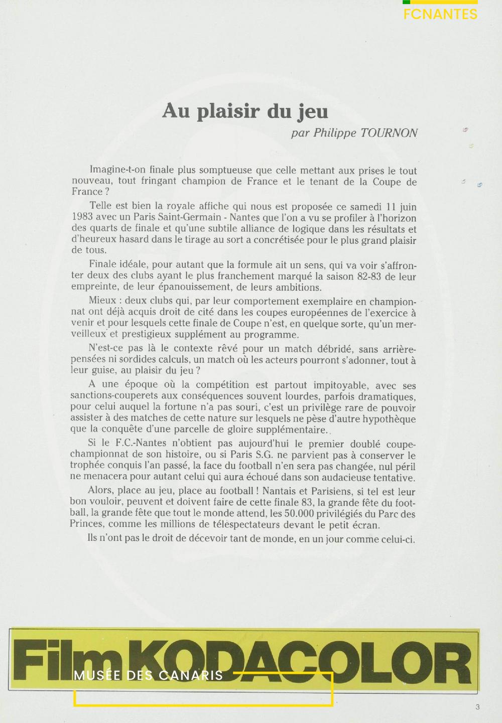 Le programme de la finale de Coupe de France, FC Nantes/Paris SG en 1983.