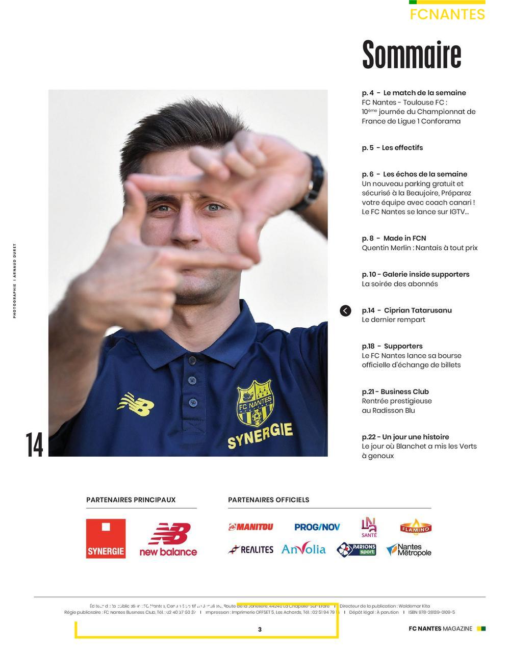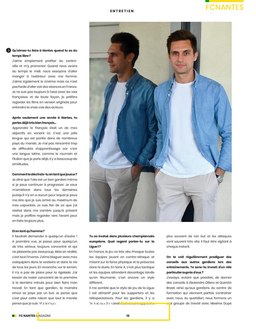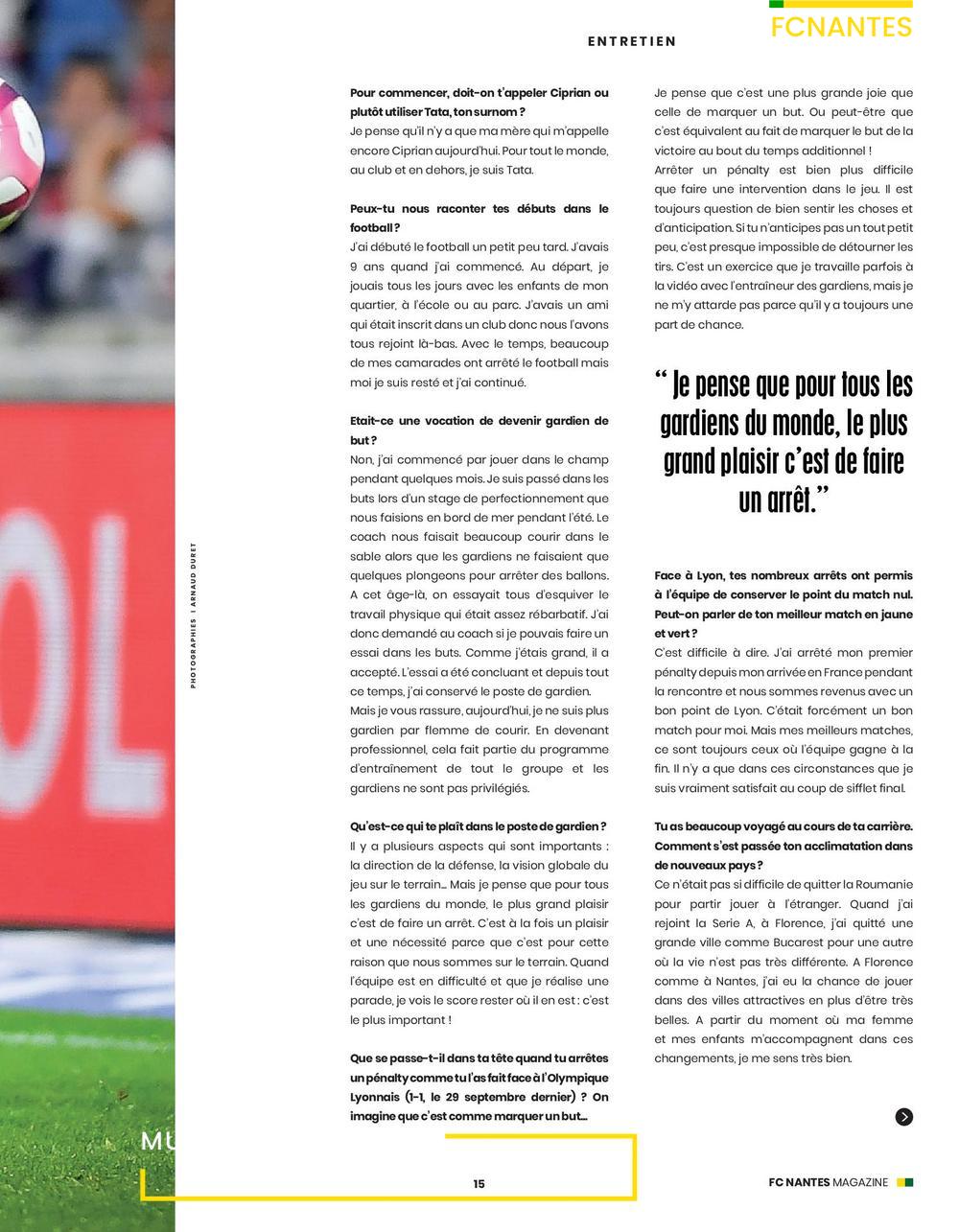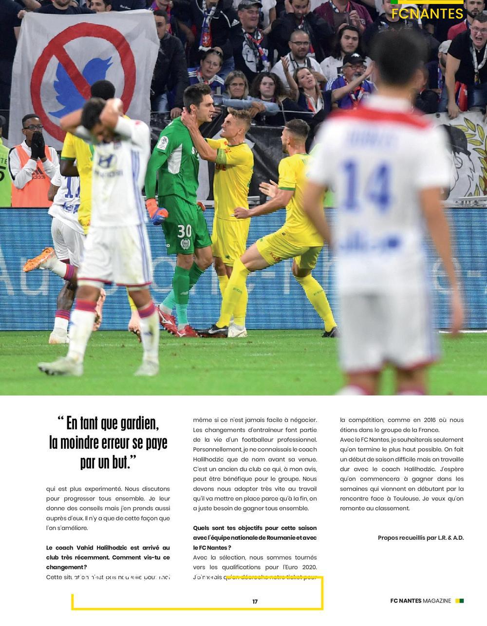 En une du magazine du 20 octobre 2018 : Ciprian Tatarusanu, gardien au FC Nantes de 2017 à 2019.