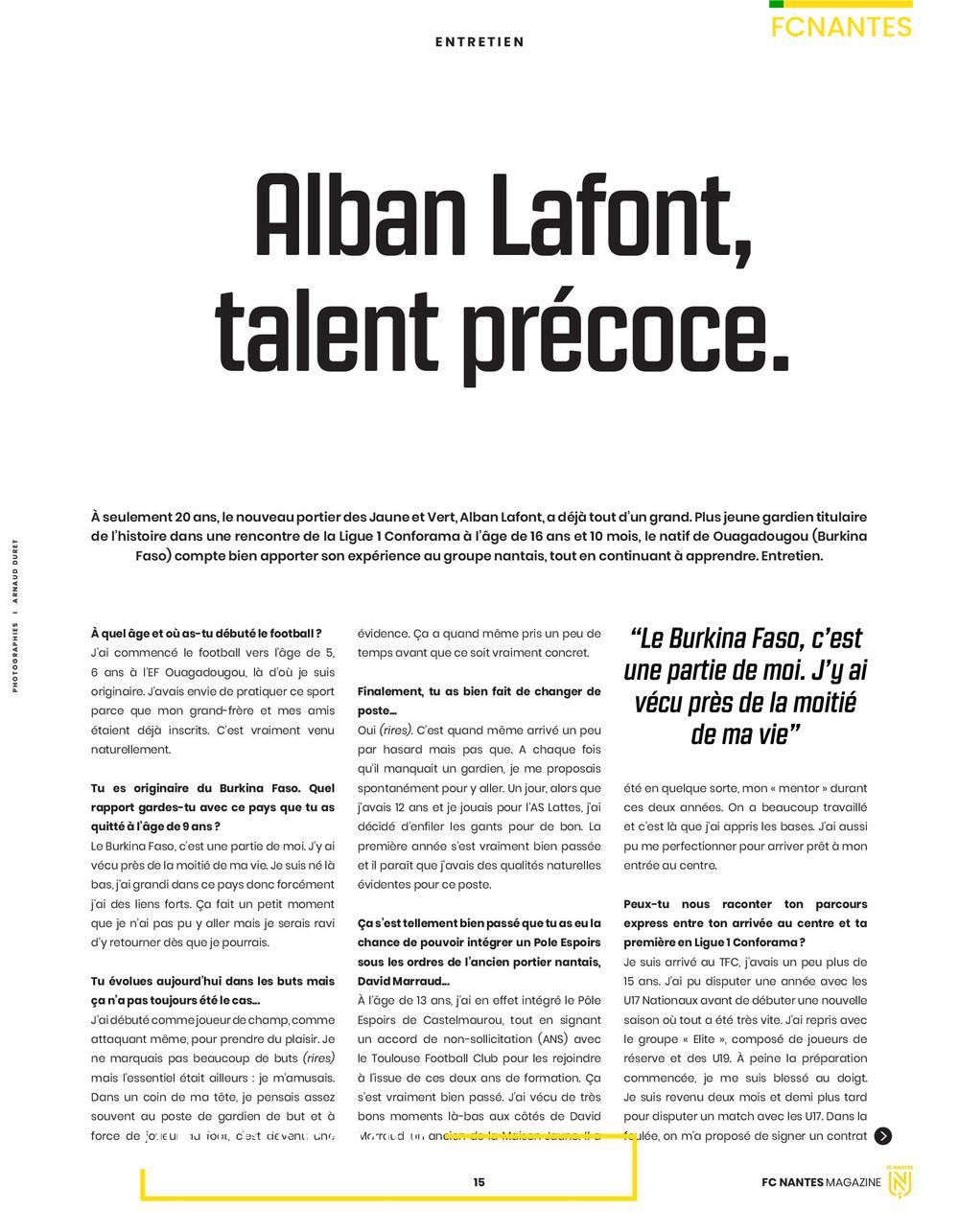 En une du magazine du 31 août 2019 : Alban Lafont, gardien arrivé au Club lors de la saison 2019/2020.