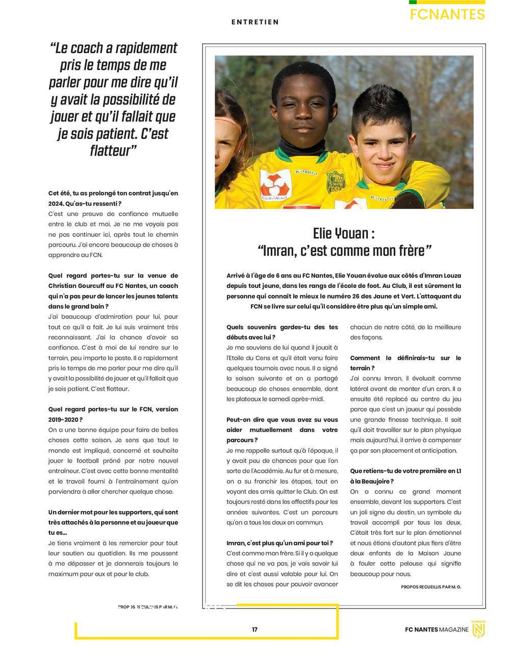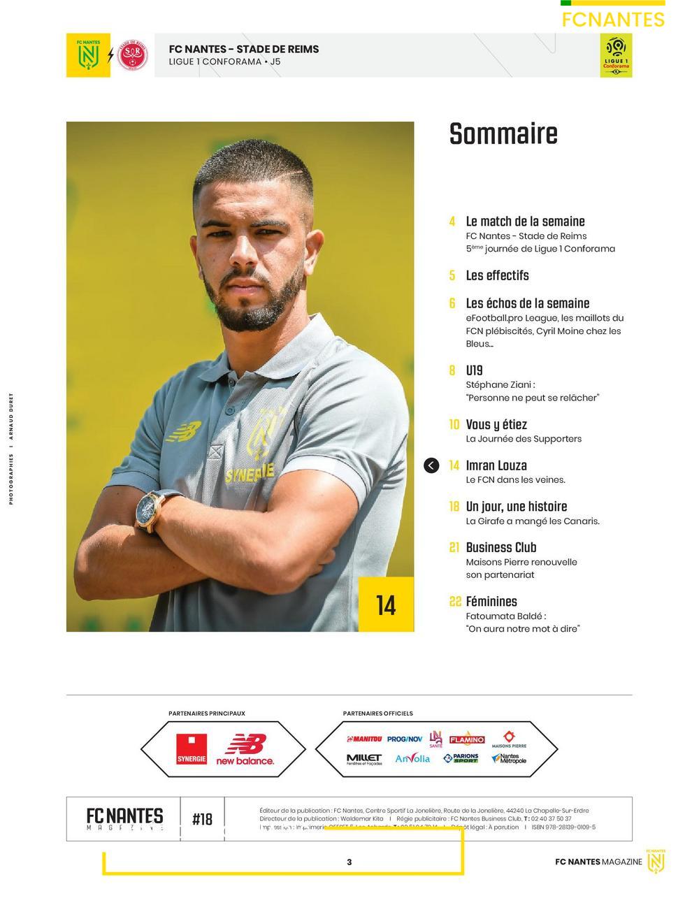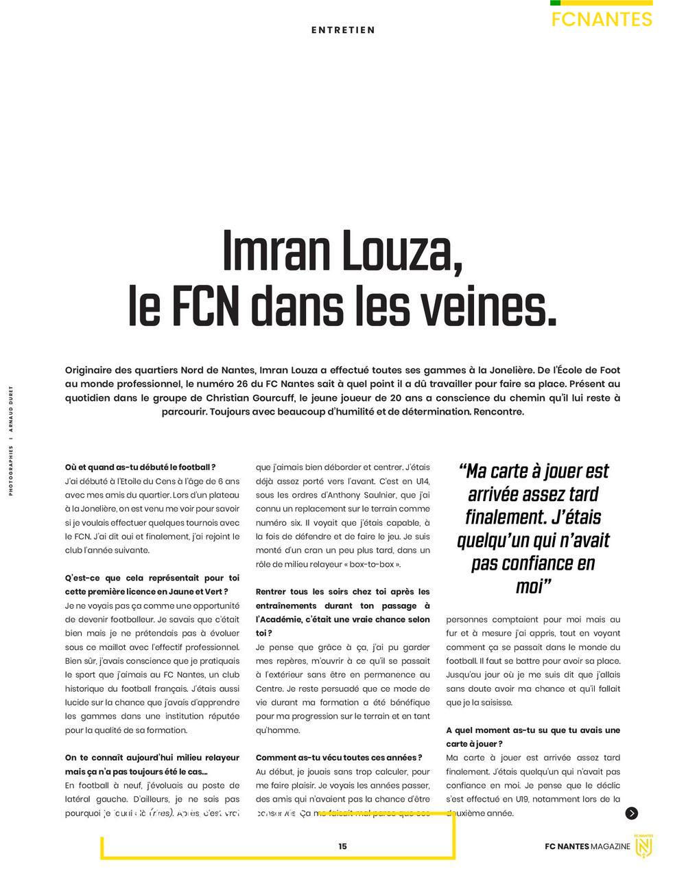 En une du magazine du 15 septembre 2019 : Imran Louza, joueur formé au FC Nantes et joueur pro depuis la saison 2019/2020.