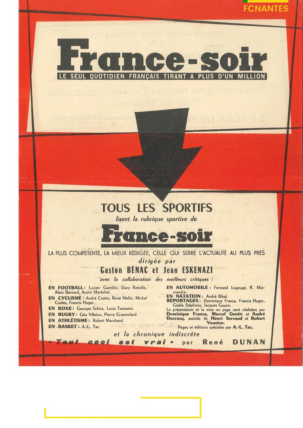 Le journal France Soir donne la composition des équipes du match Nantes/Monaco, joué en Division1, le 6 octobre 1963.
