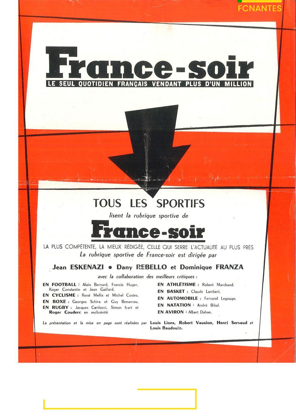 Le journal France Soir donne la composition des équipes du match Nantes/Reims, joué le 3 novembre 1963.