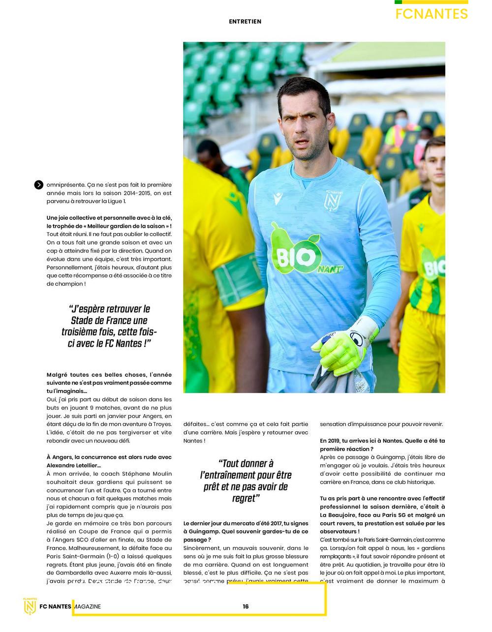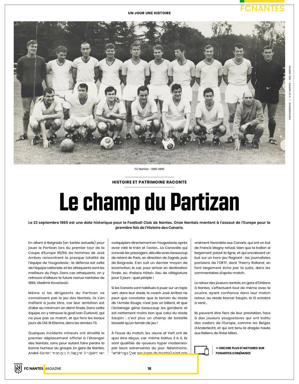 En couverture, Denis Petric, le gardien slovène du Club, 2ème gardien derrière Alban Lafont + le 1er match des Canaris en Coupe d'Europe en 1965 + visuel de la 1ère exposition du Club "Tous Supporters, histoires du FC Nantes".