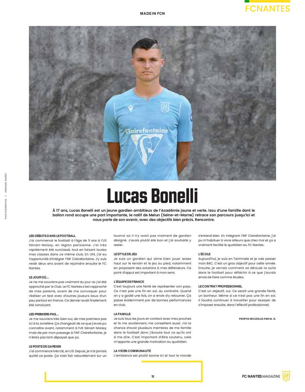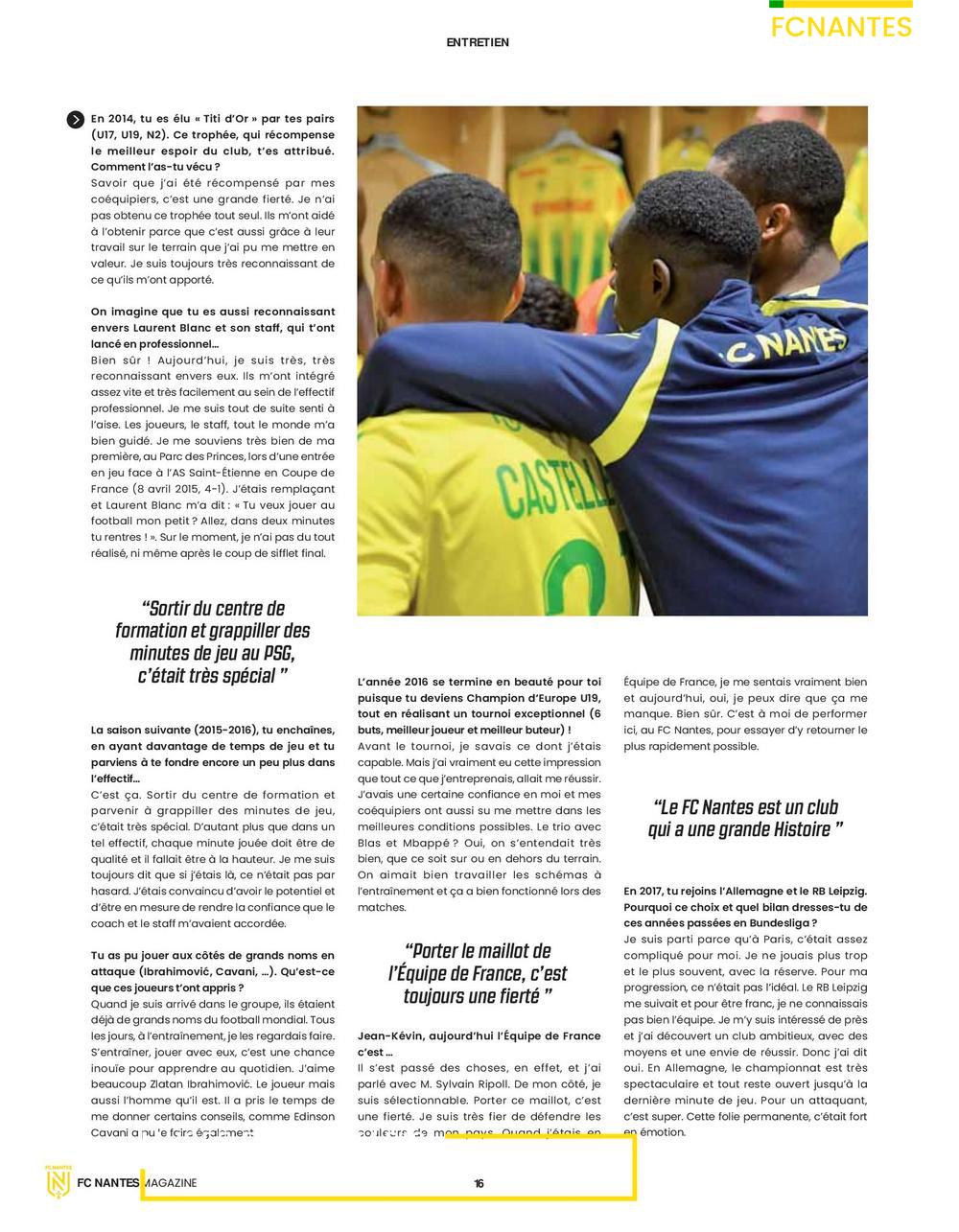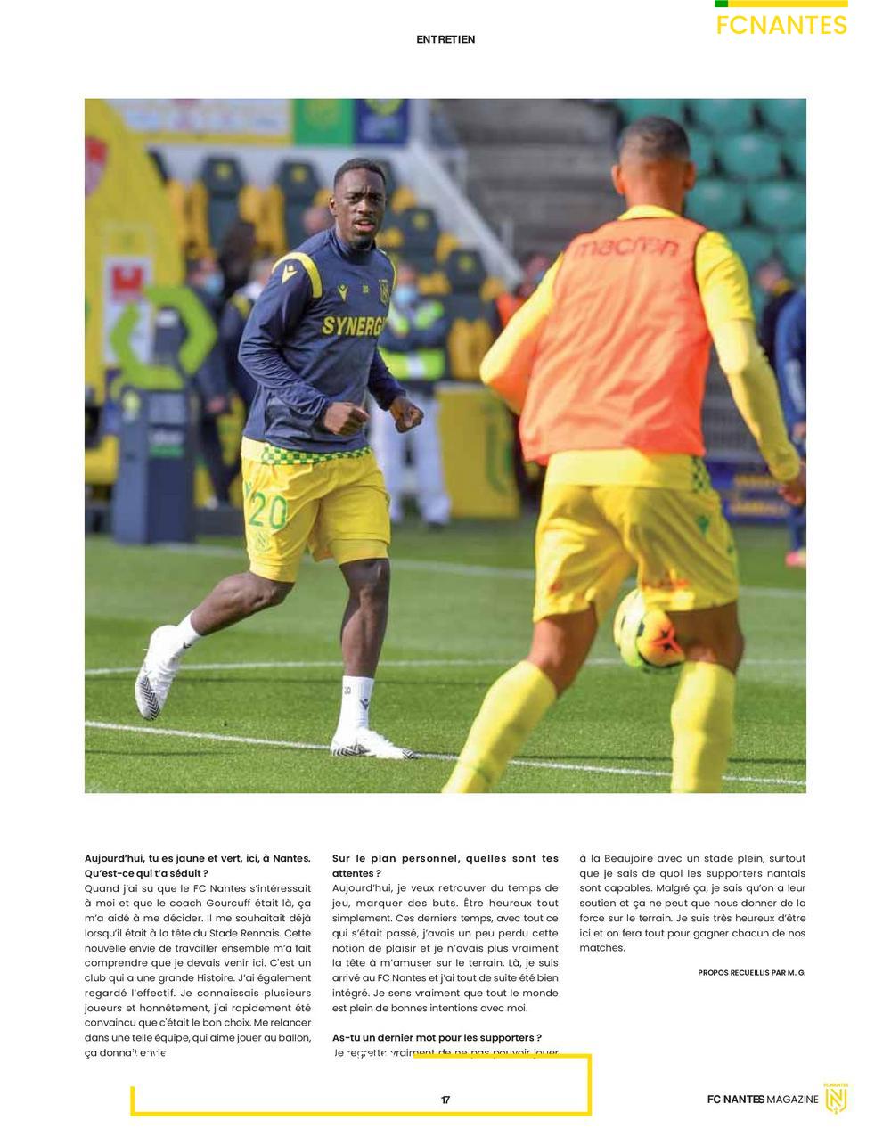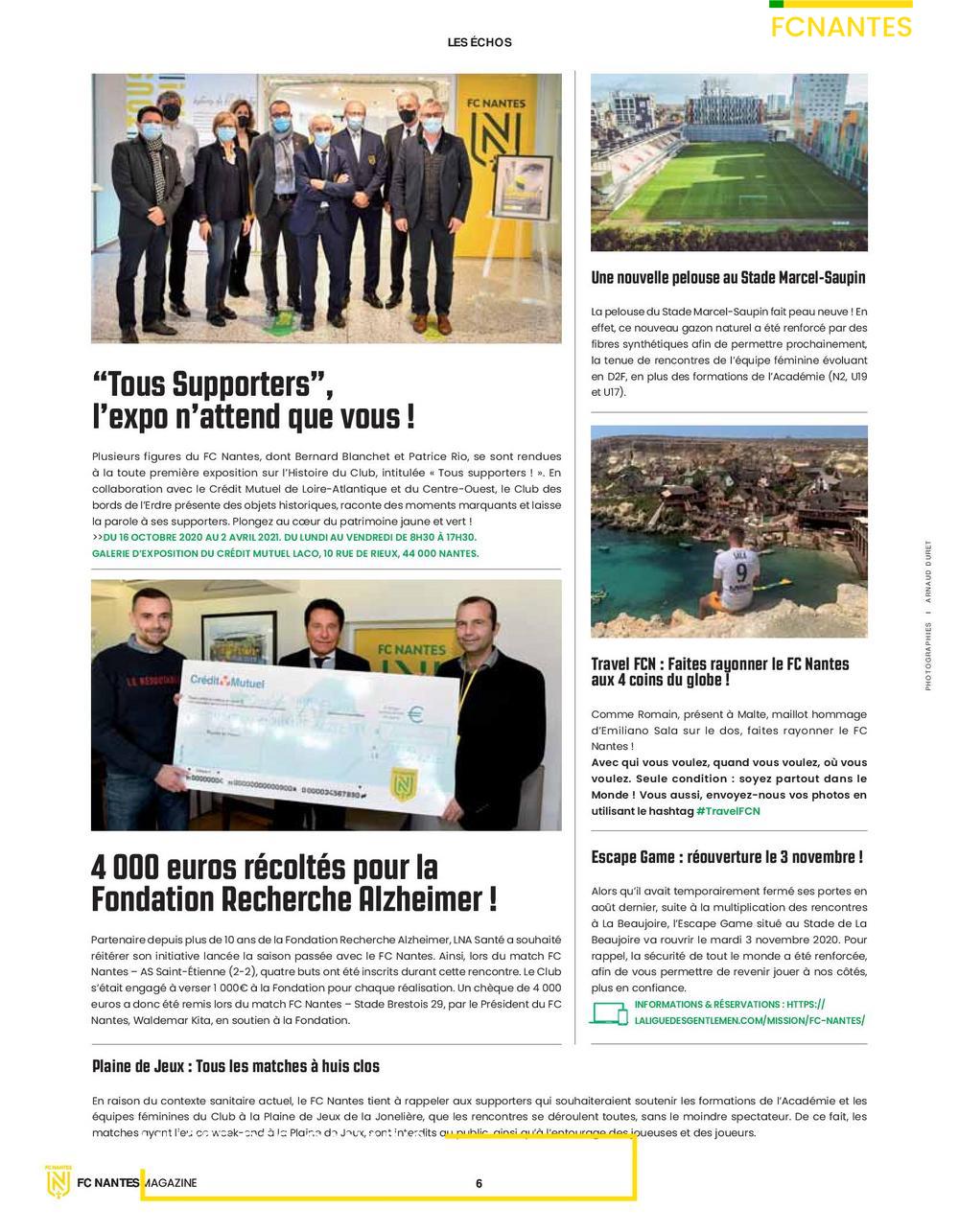 En couverture, Jean Kévin Augustin, ancien du PSG, nouvellement recruté, la formation avec Lucas Bonelli, uen ITW de Maxime Bossis avant le match face au PSG + visuel de la 1ère exposition du Club "Tous Supporters, histoires du FC Nantes".