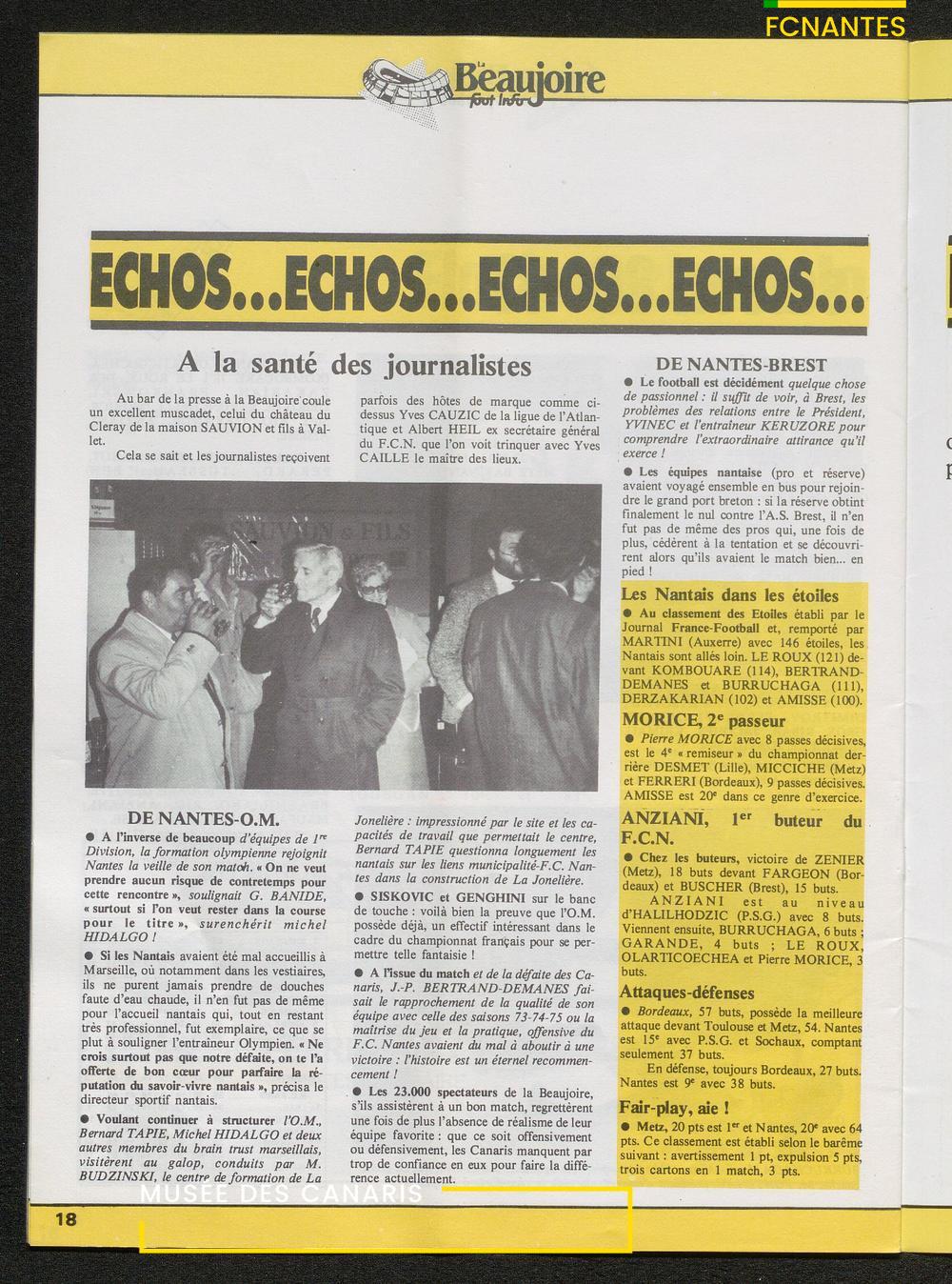 Max Bouyer a lancé "la Canarimania", en mai 1987, et l'engouement qui doit permettre de retrouver des résultats et de ne plus se faire piller les joueurs à l'intersaison....
