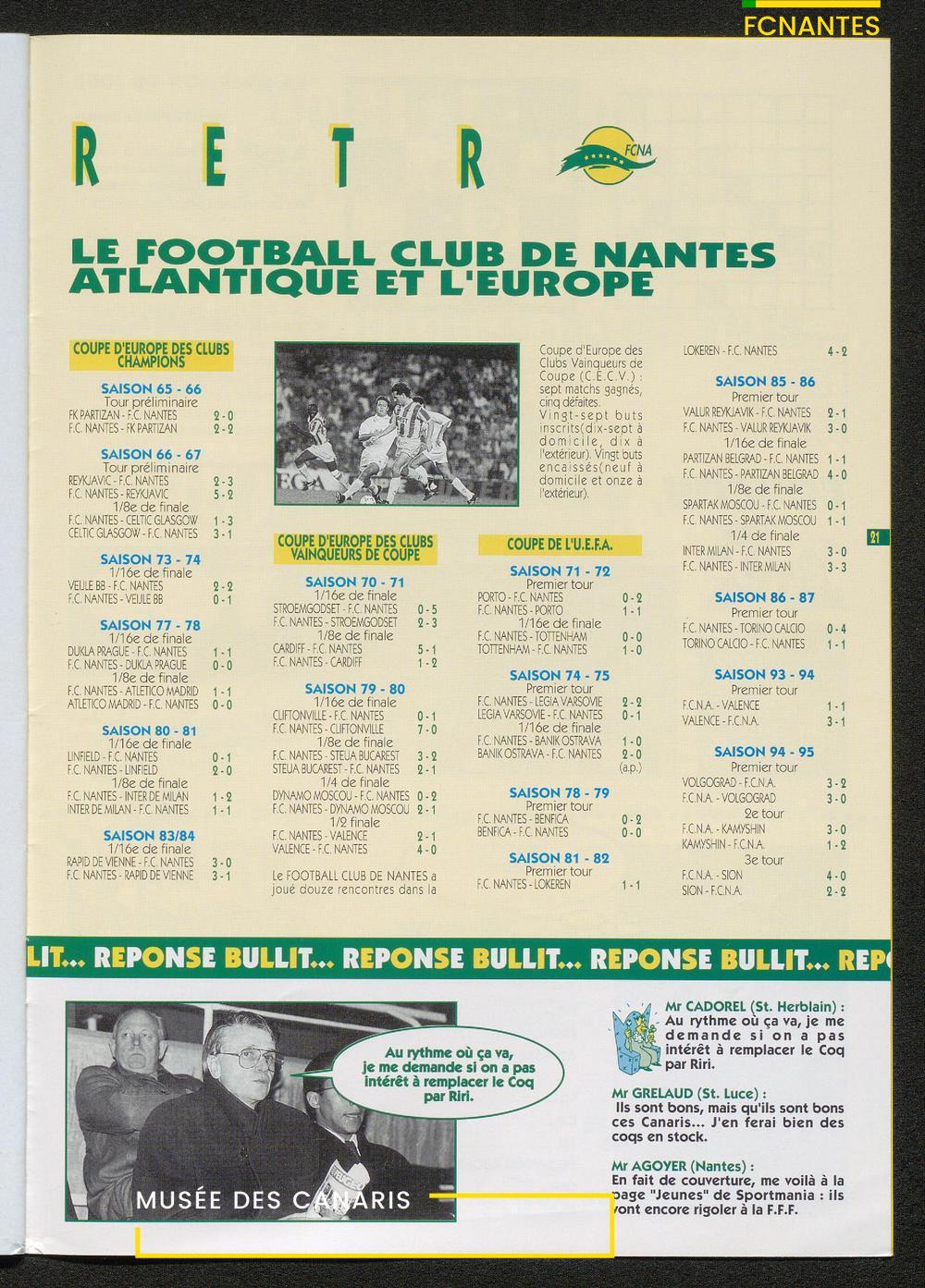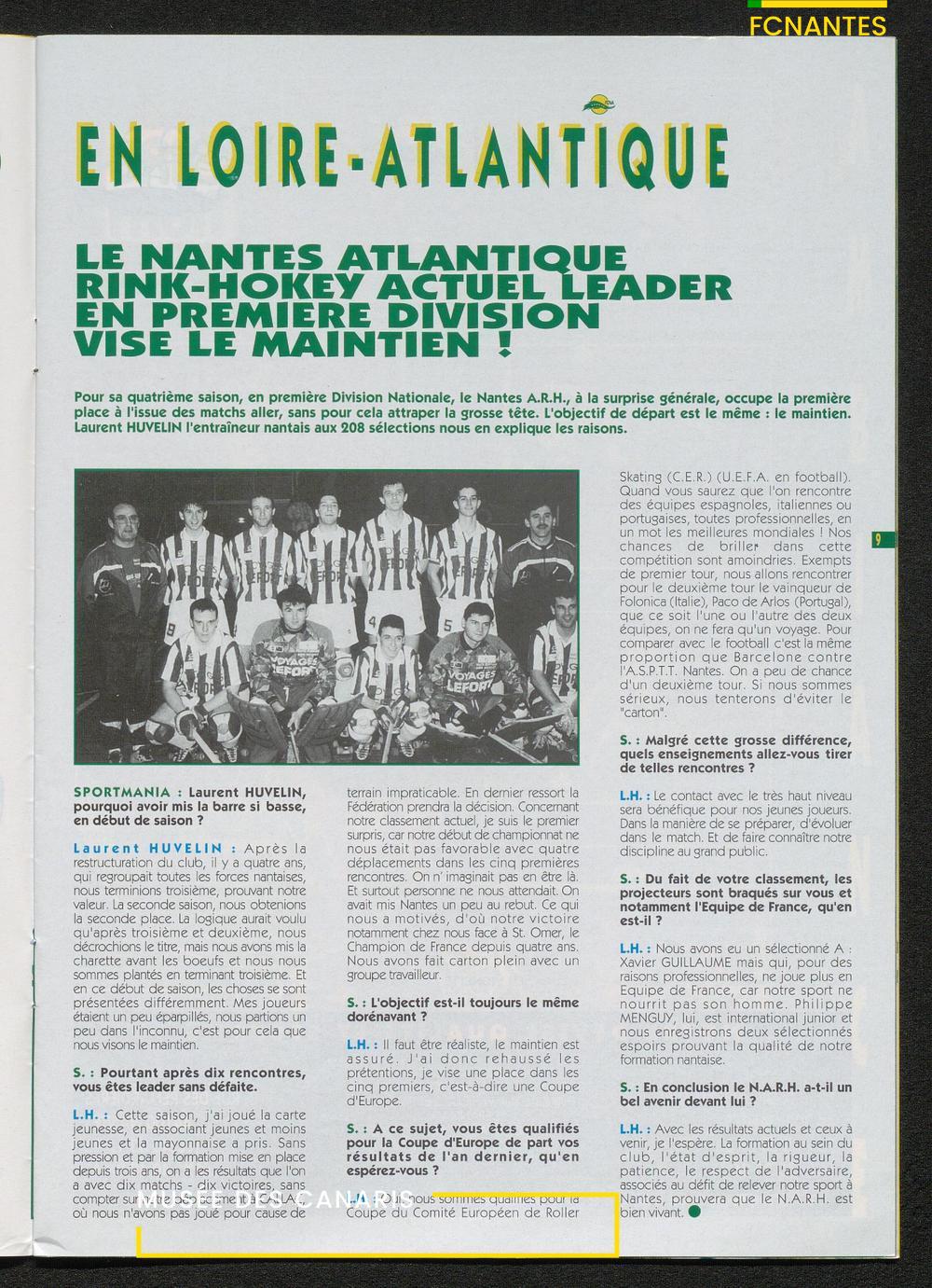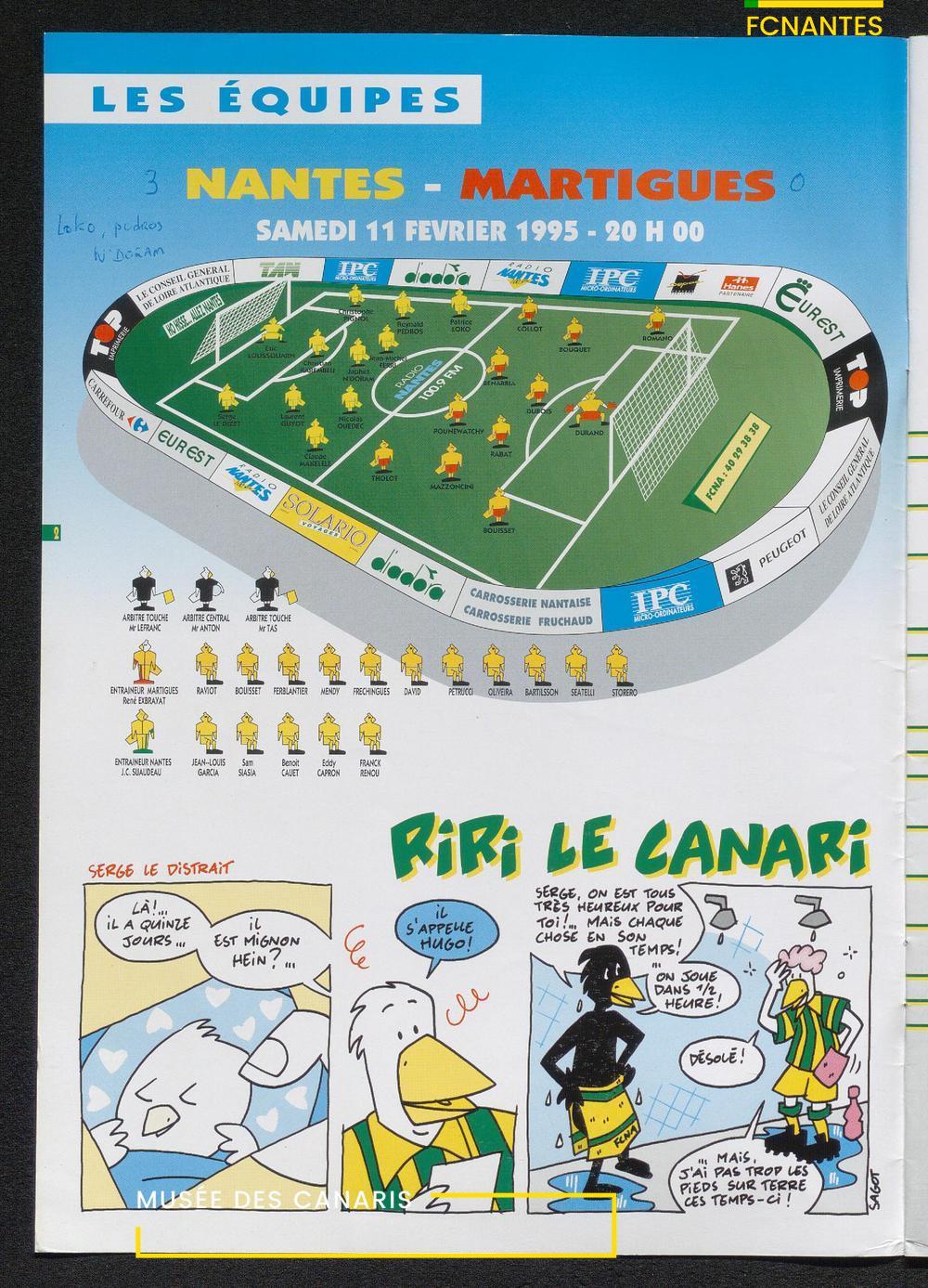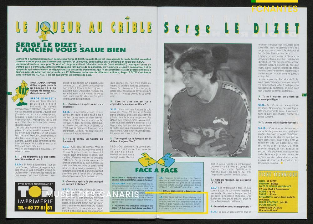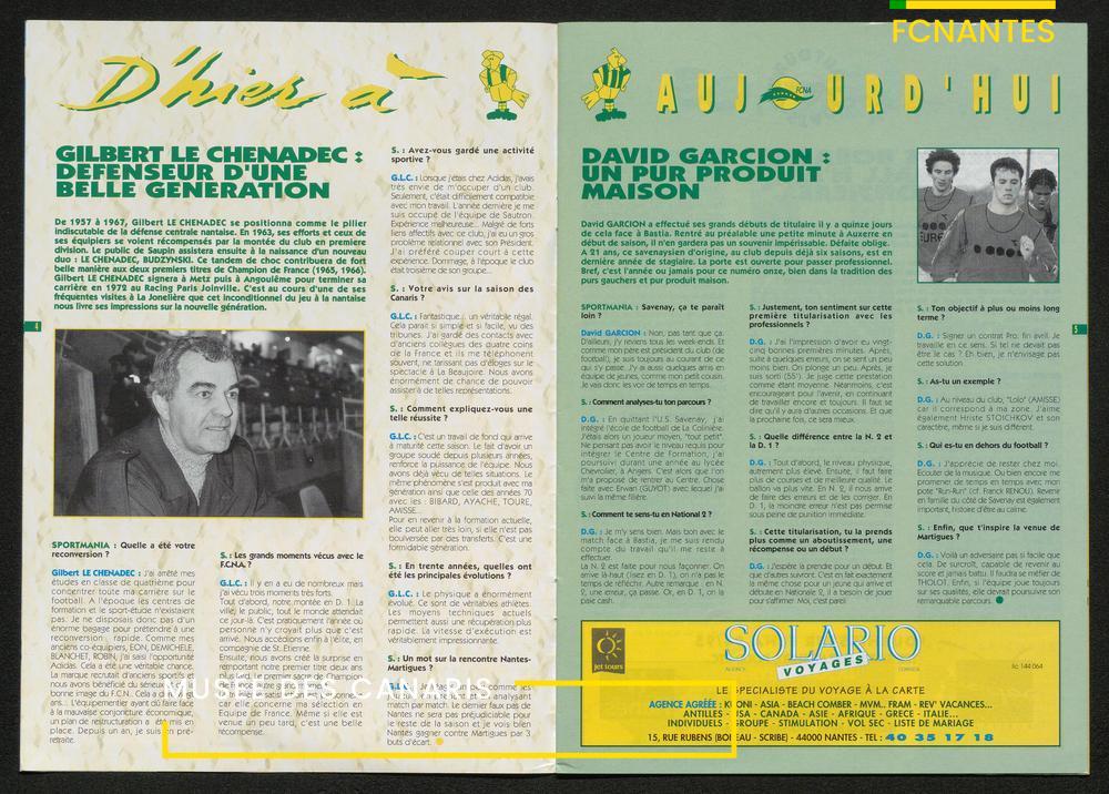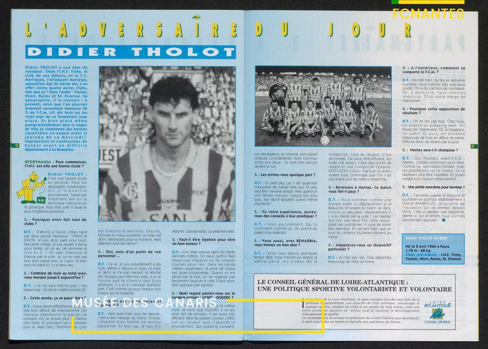 Magazine du Club, avant le match Nantes-Martigues, le samedi 11 février 1995 (2) : itw de Le Dizet, Gilbert Le Chenadec, Olivier de Bouard, David Garcion, et Didier Tholot.