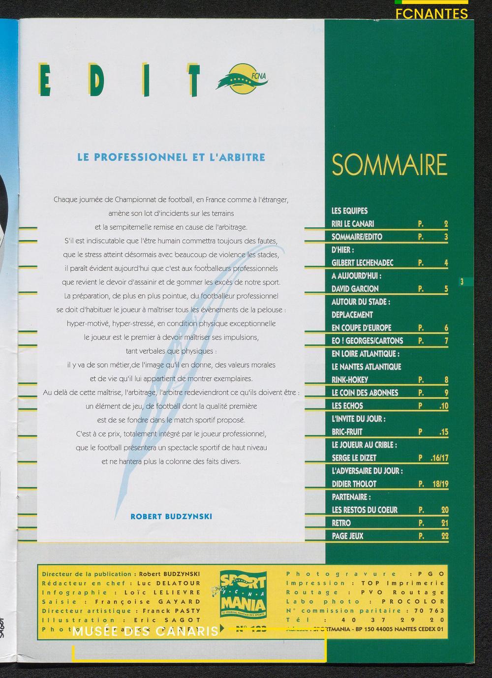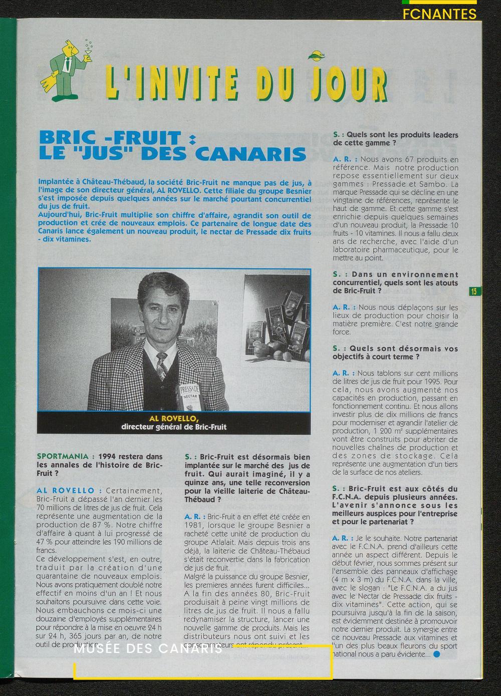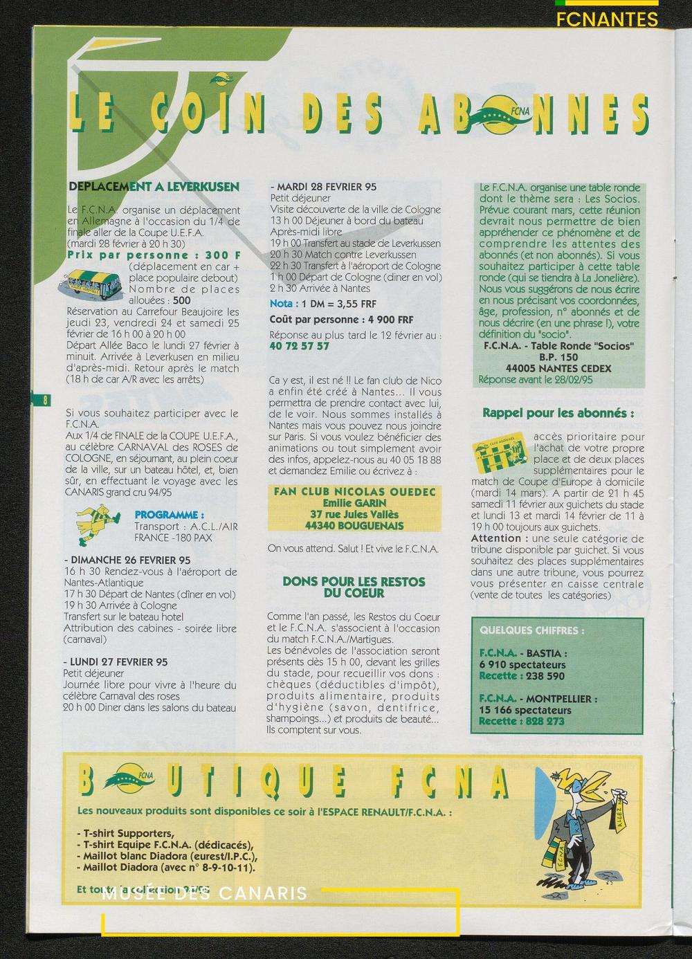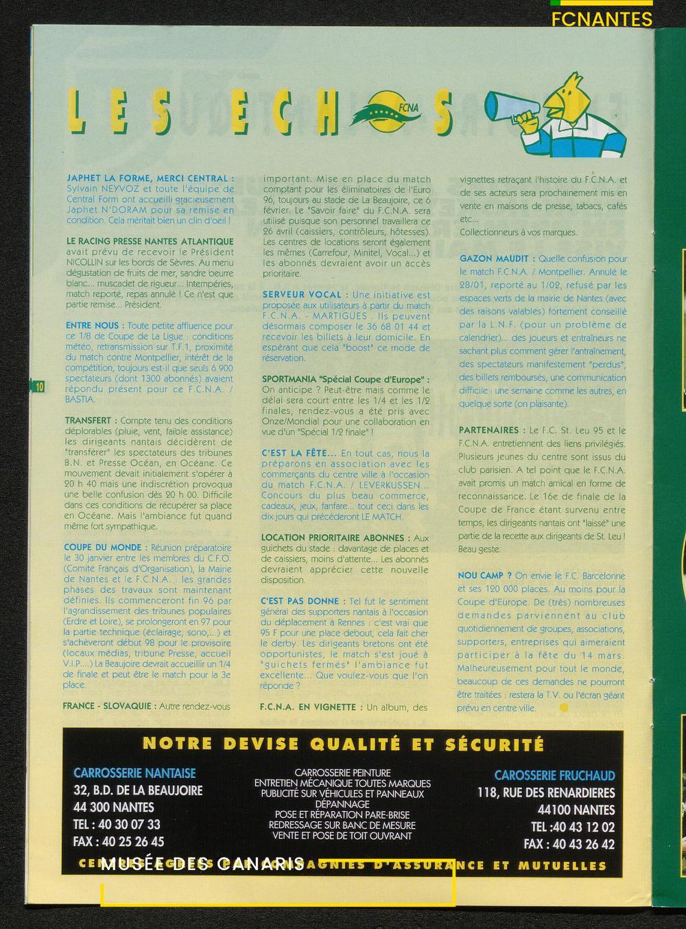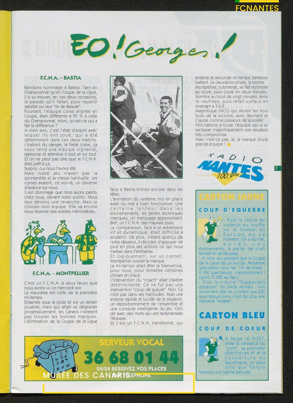 Magazine du Club, avant le match Nantes-Martigues, le samedi 11 février 1995 (2) : itw de Le Dizet, Gilbert Le Chenadec, Olivier de Bouard, David Garcion, et Didier Tholot.