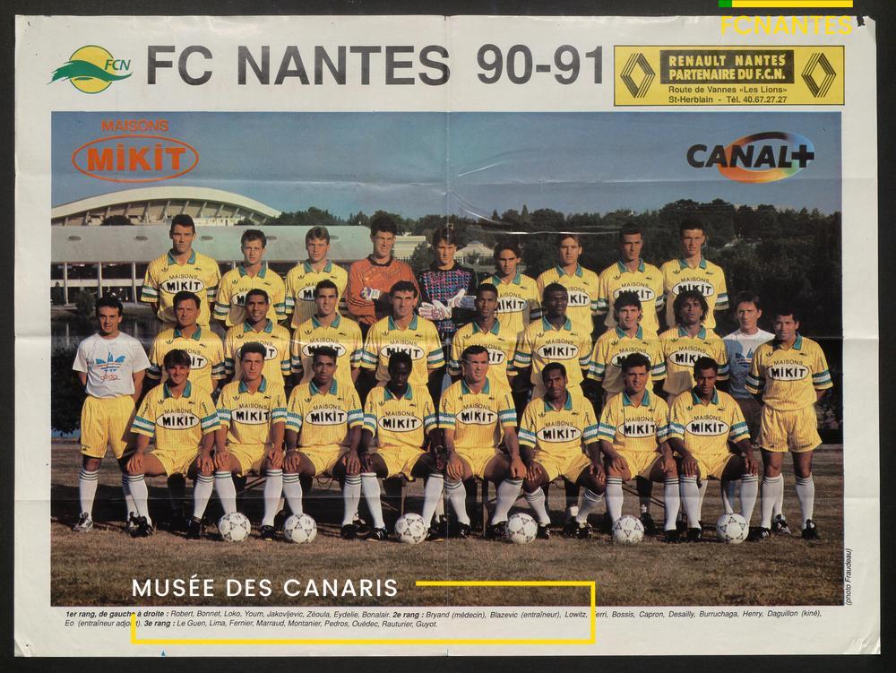 Poster central de l'effectif de la saison 90/91, et le jeune Nicolas Ouédec en couverture (19 ans).