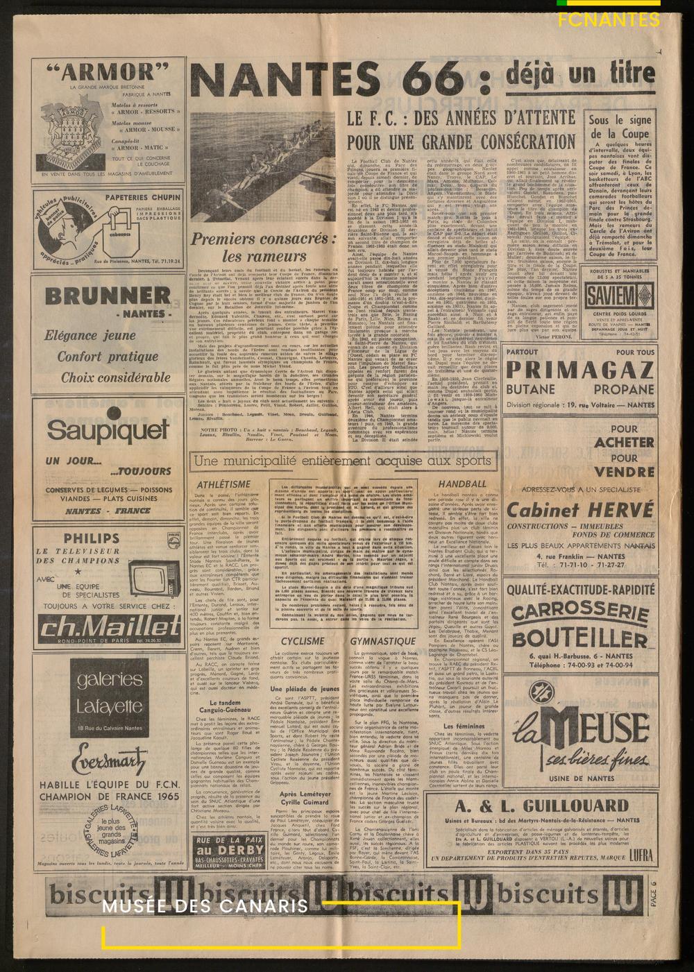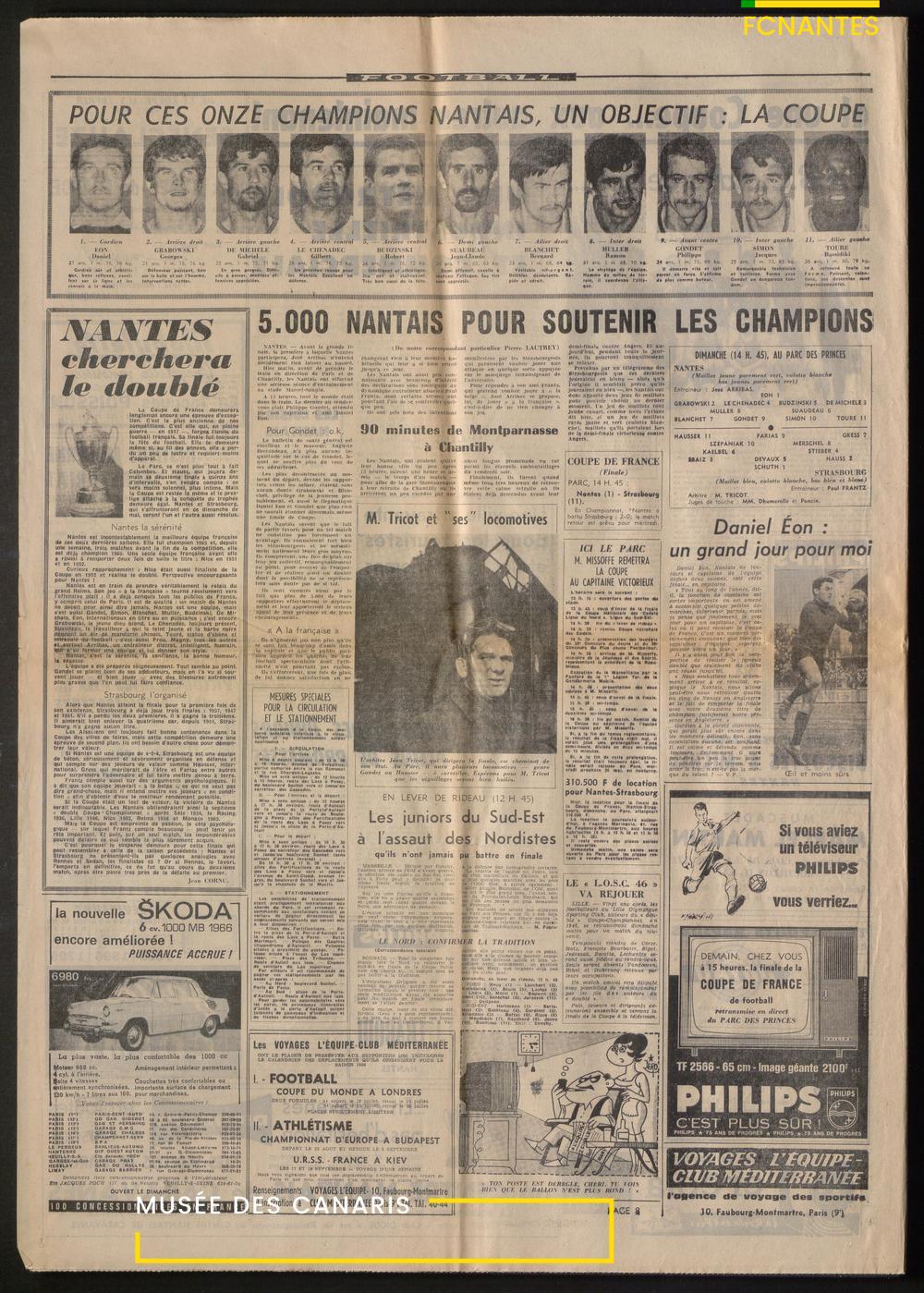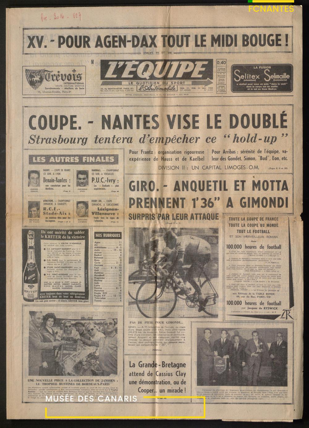 L'Equipe fait sa couverture sur la finale de Coupe de France 1966 contre Strasbourg.