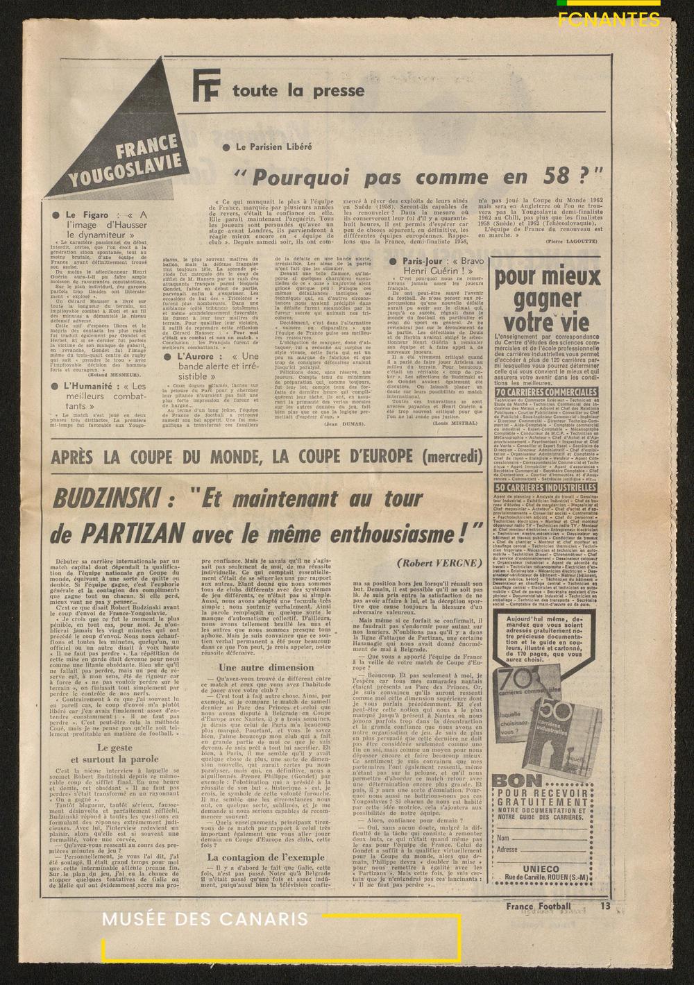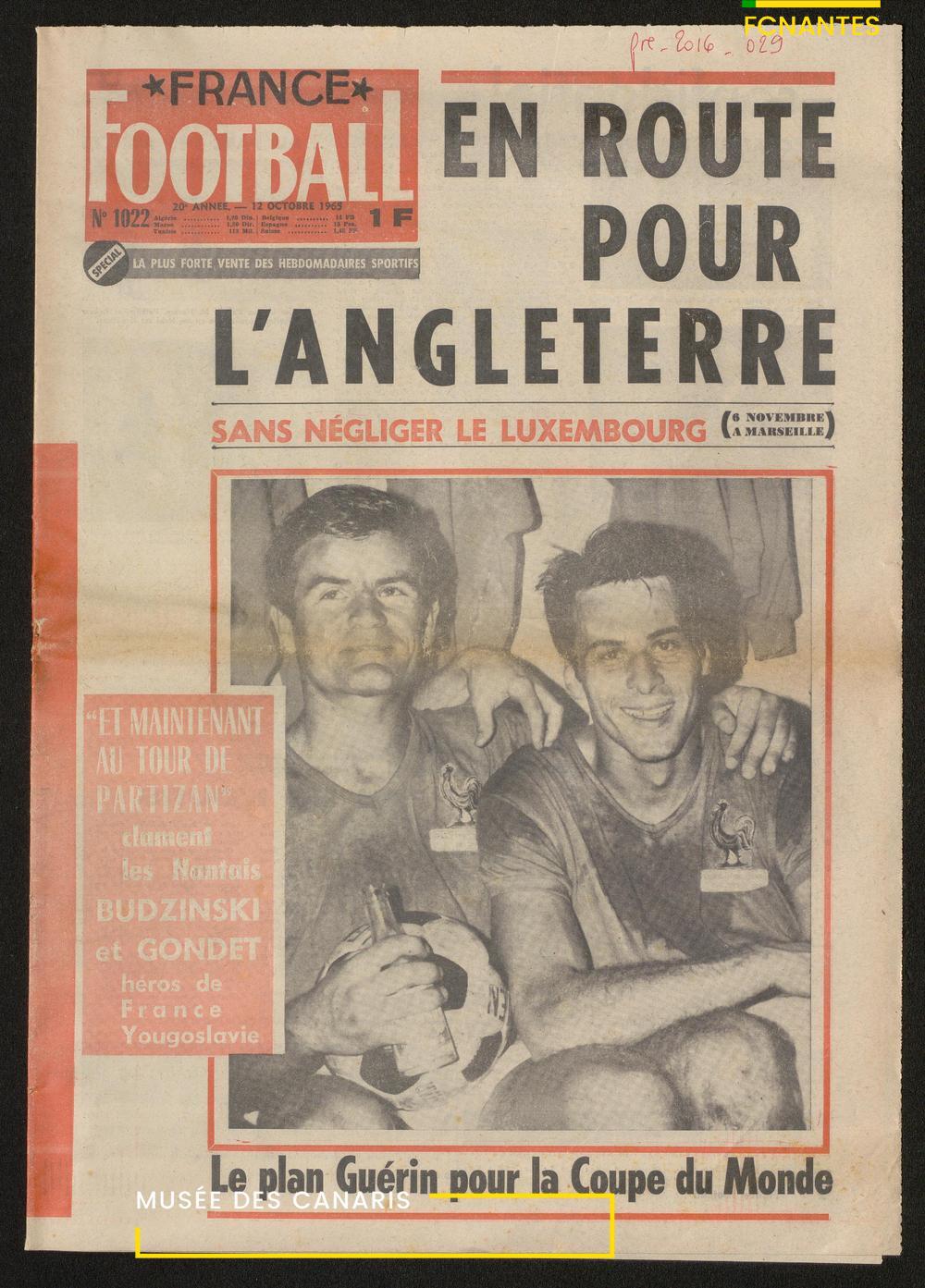 France Football fait sa couverture avec Robert Budzynski et Philippe Gondet, en route pour le mondial en Angleterre.