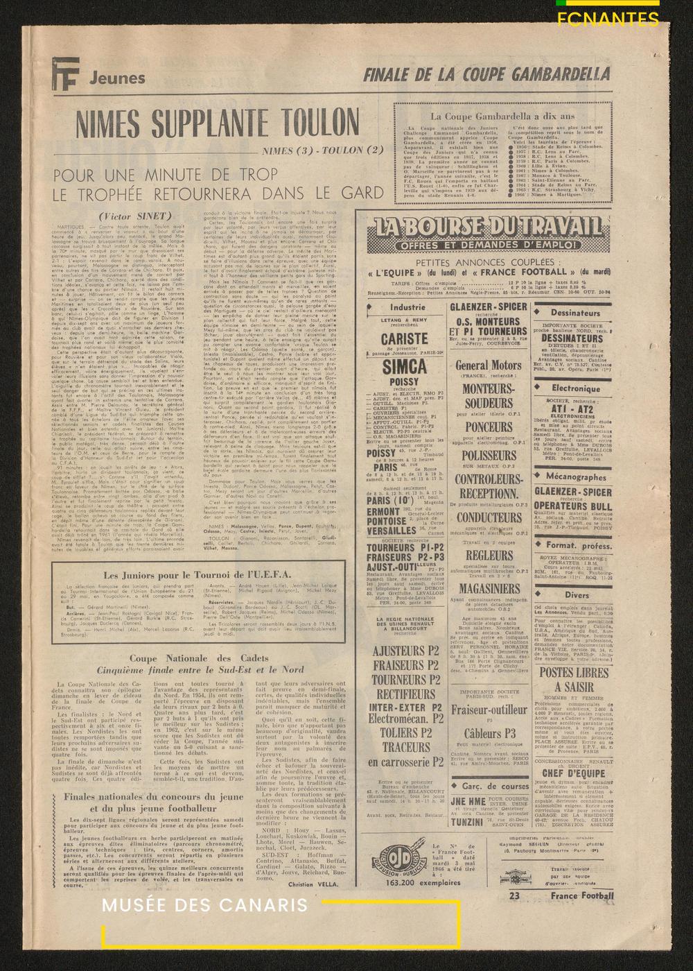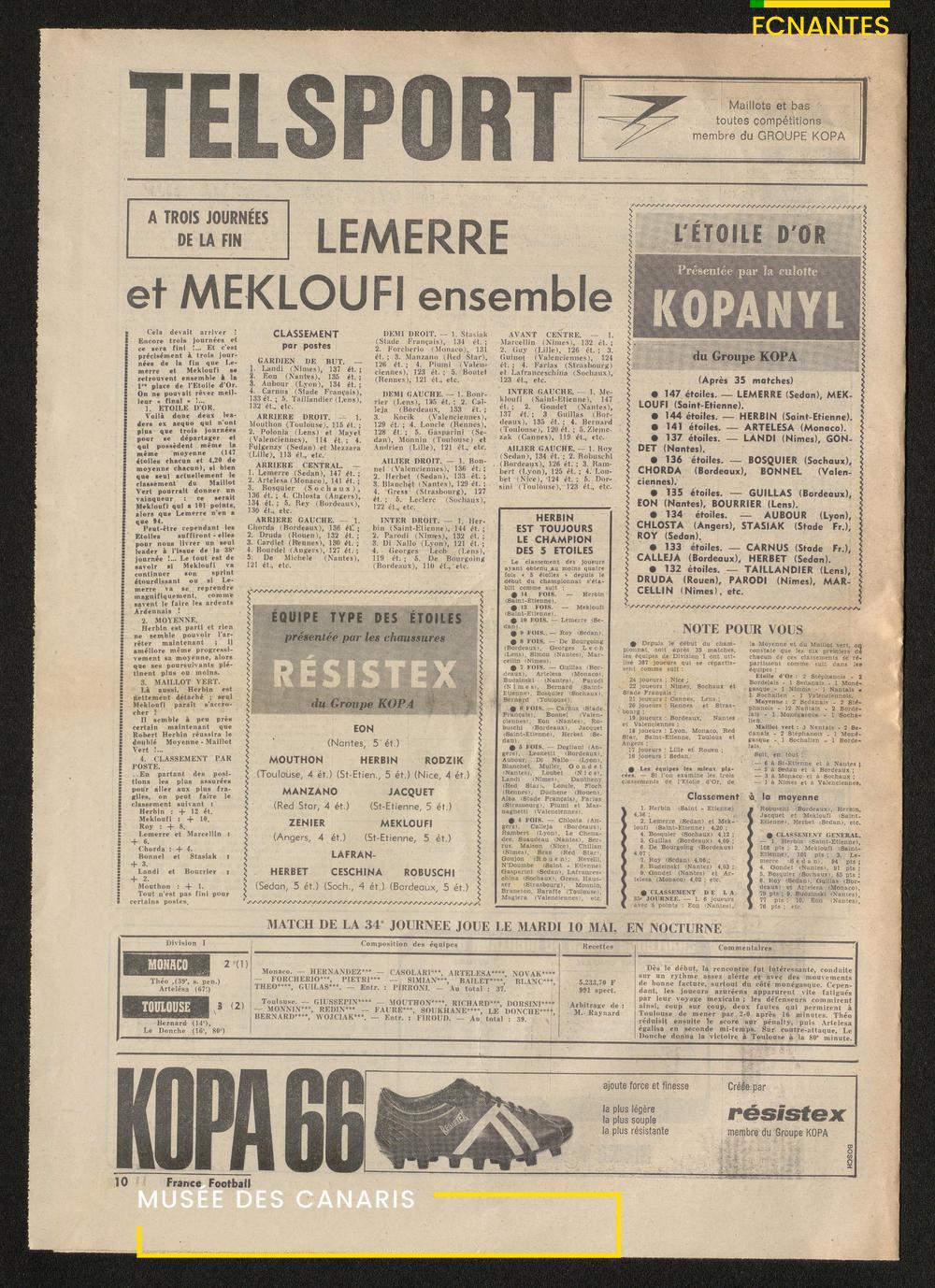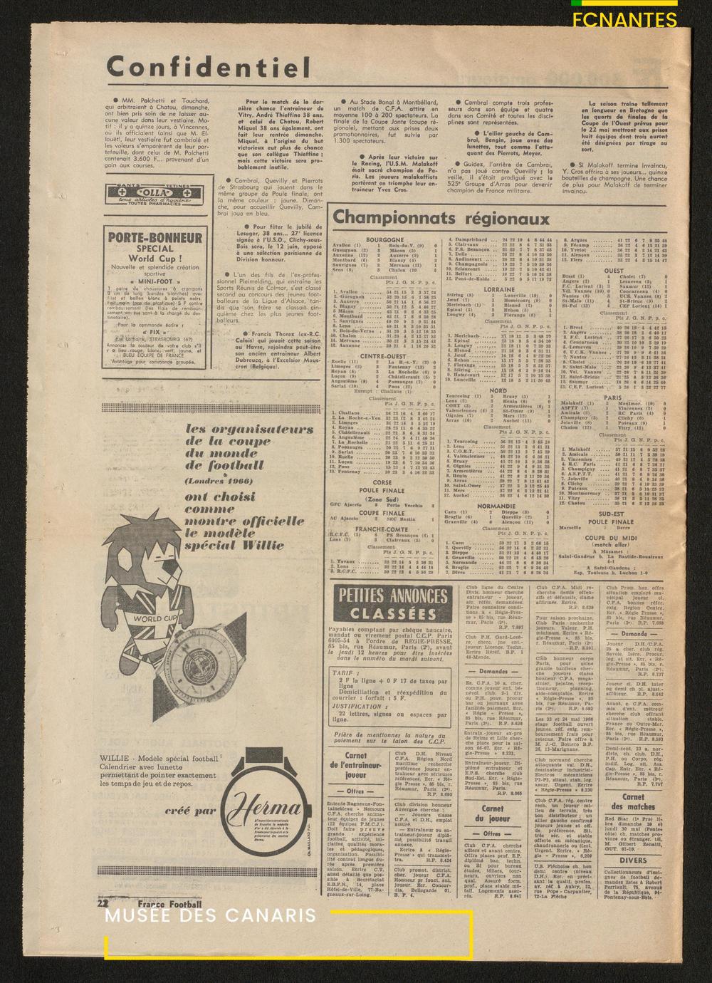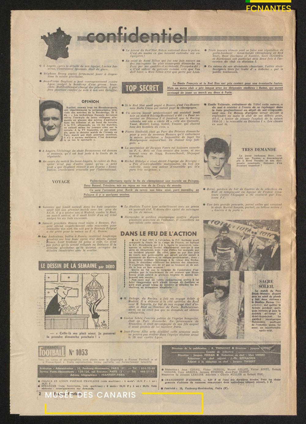 Couverture du France Football avant la finale de Coupe de France 1966 contre Strasbourg