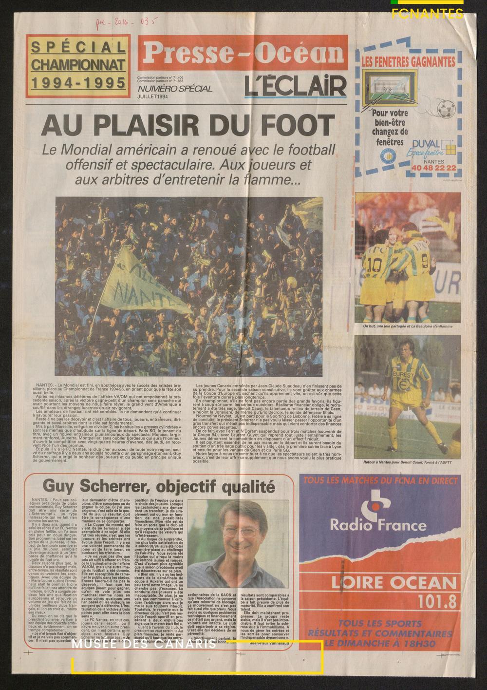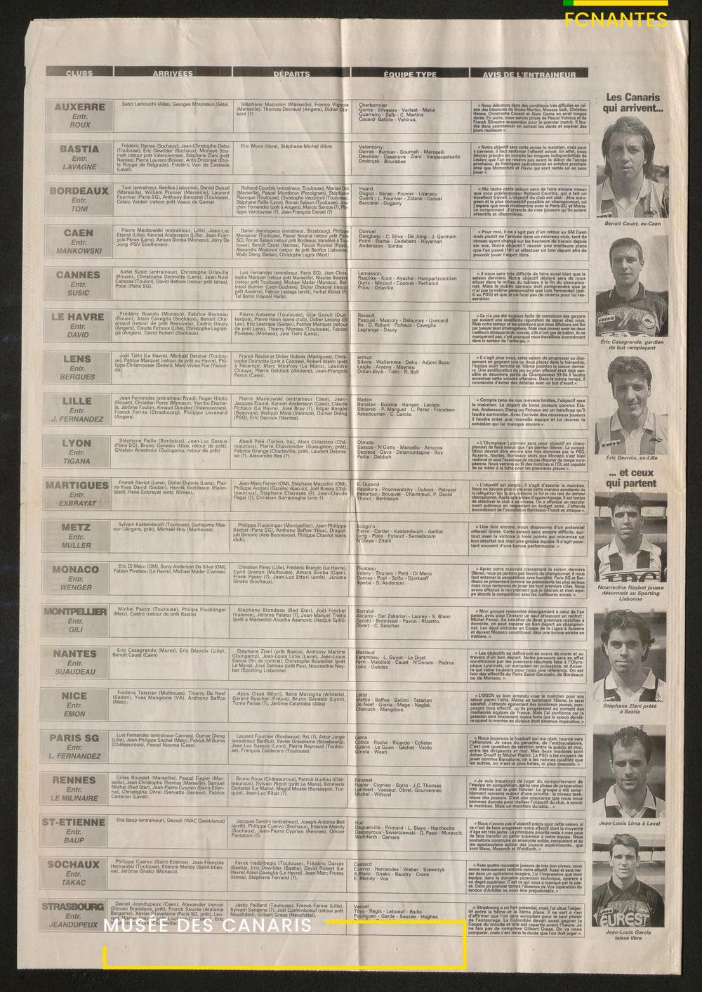 Présentation de la saison 1994/1995, avec la revue de l'effectif complet du FC Nantes, les clés pour entrer au stade de La Beaujoire.