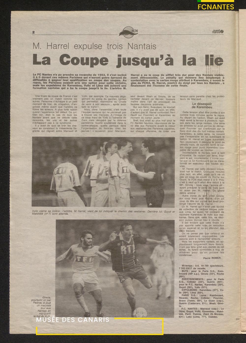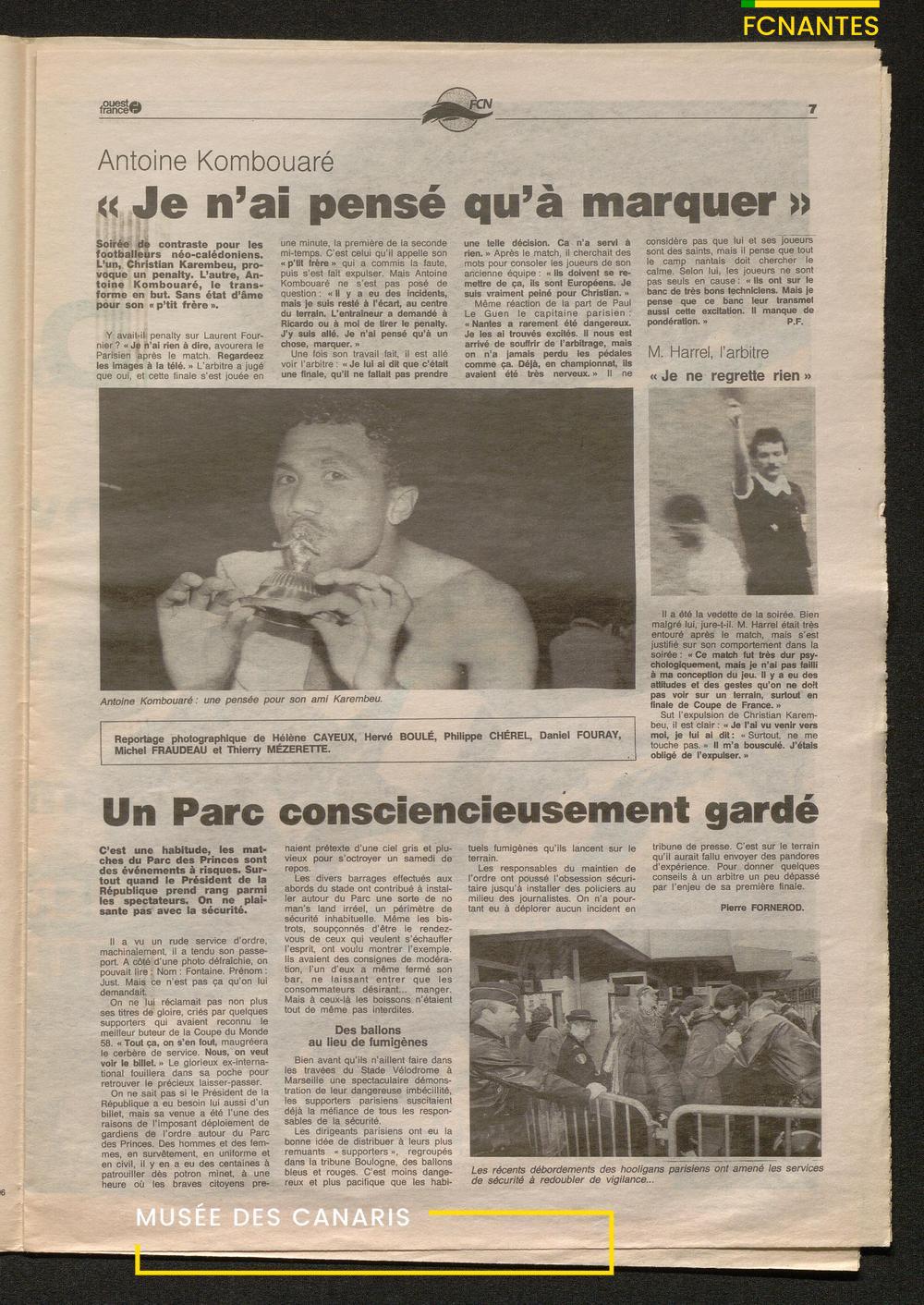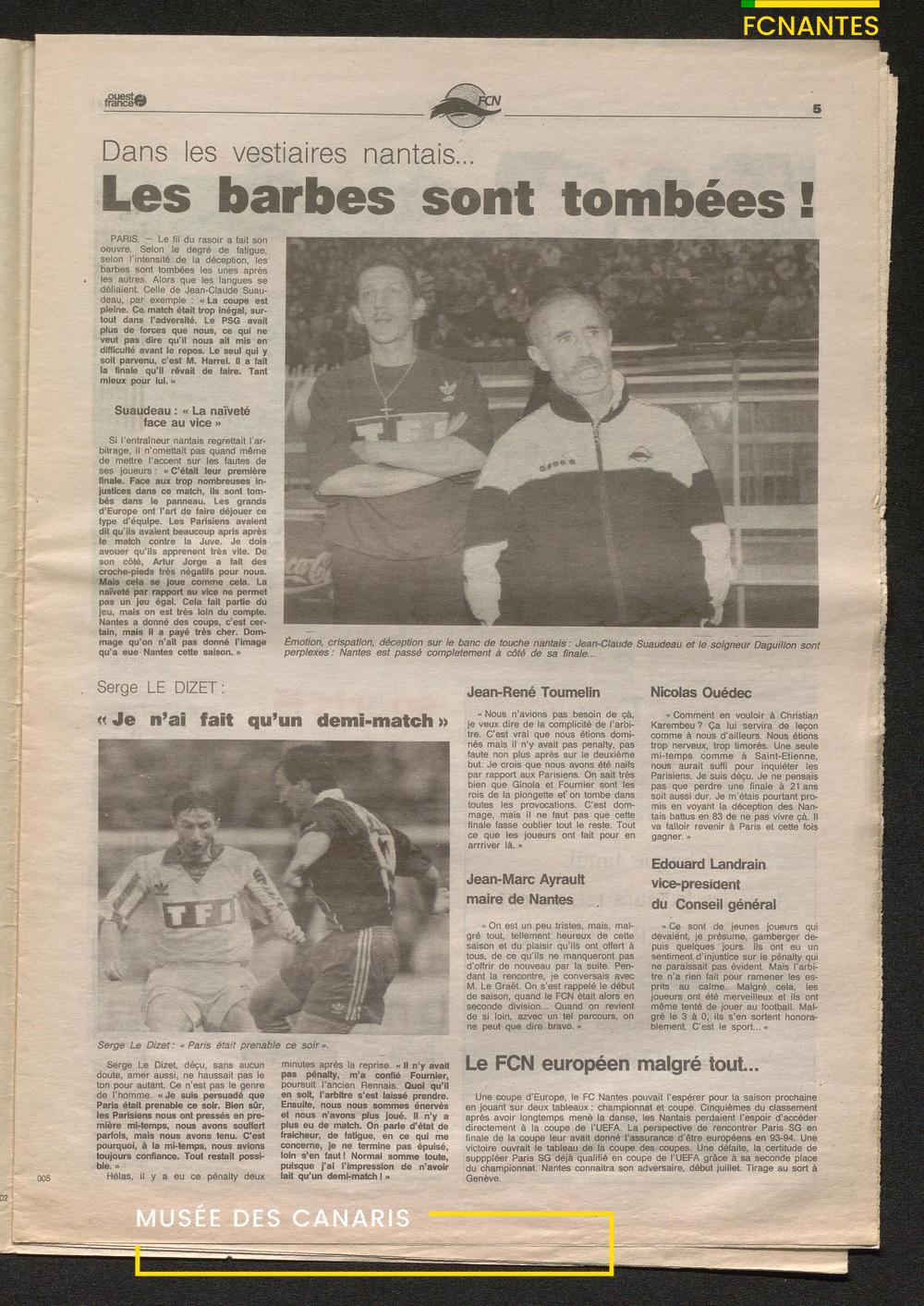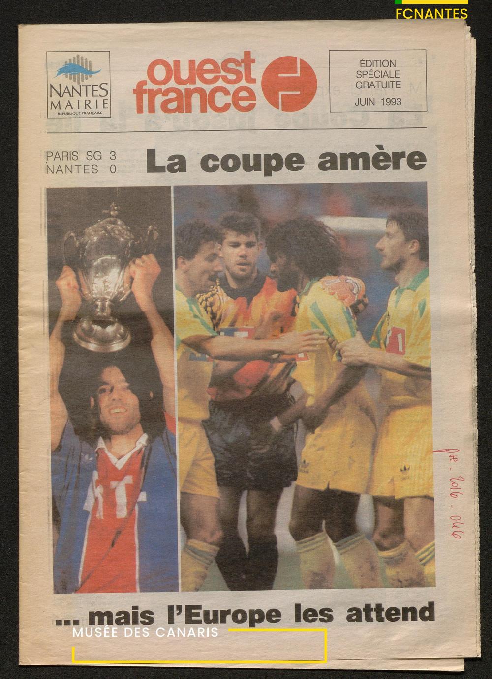 Le journal complet de Ouest France à l'issue de la finale Coupe de France 1993 contre le PSG.