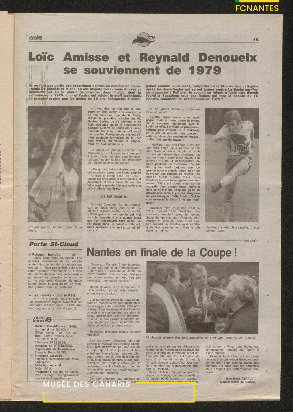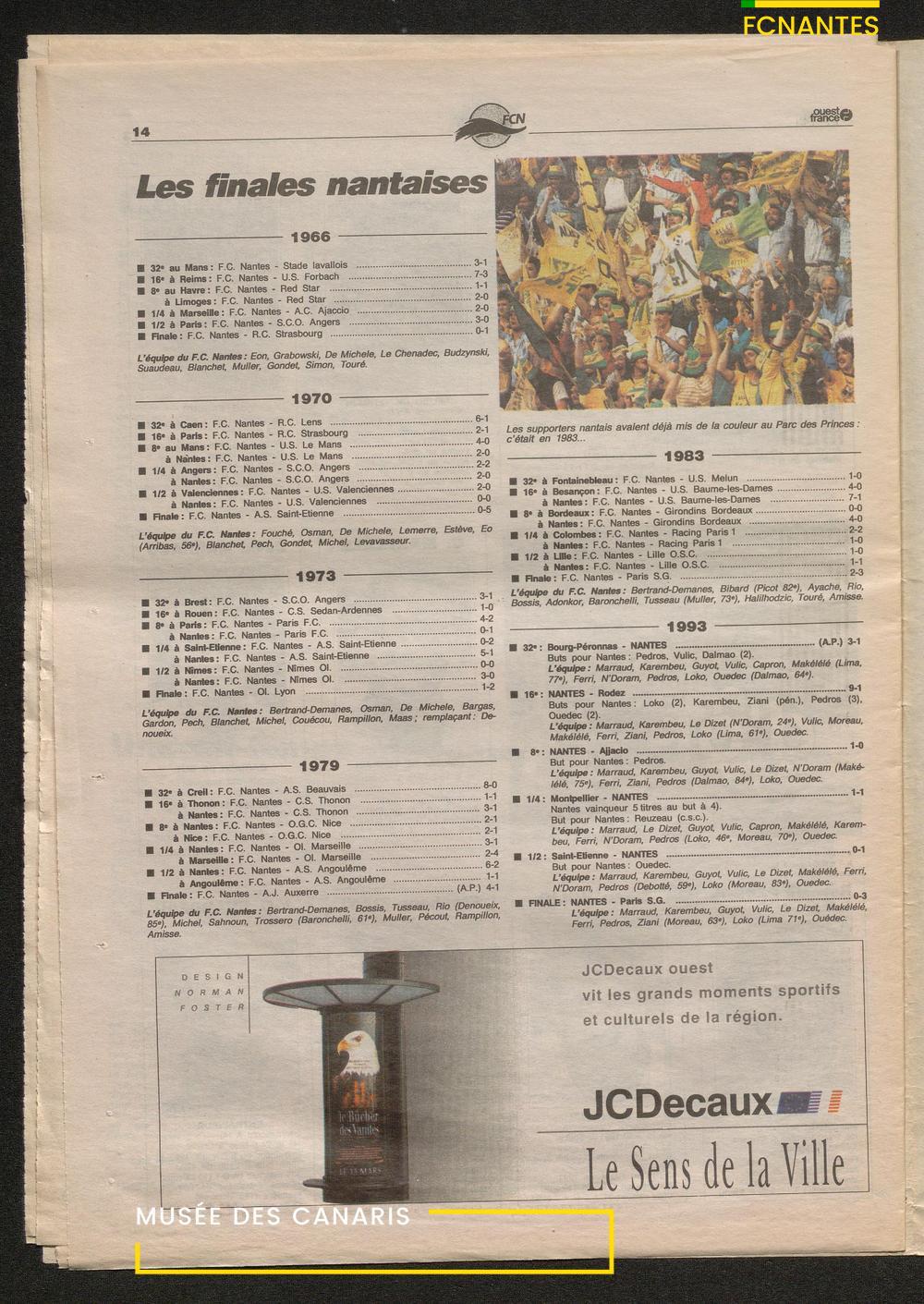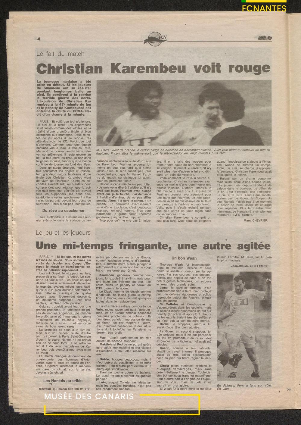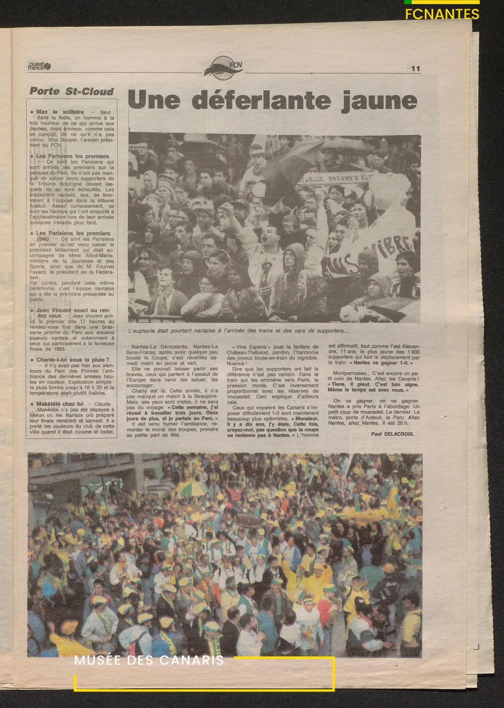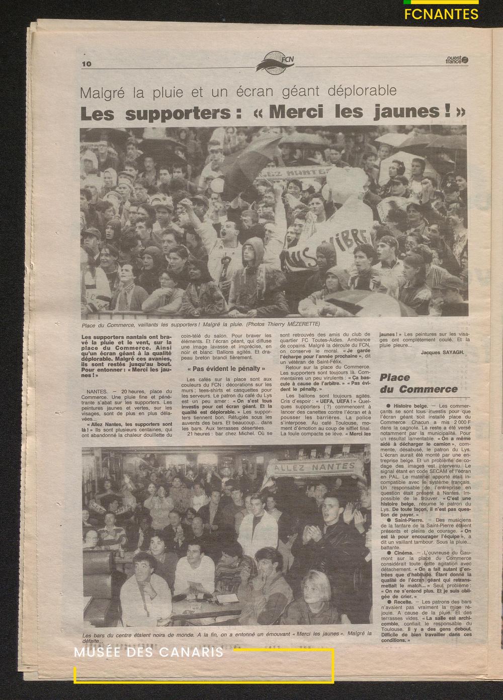 Le journal complet de Ouest France à l'issue de la finale Coupe de France 1993 contre le PSG.