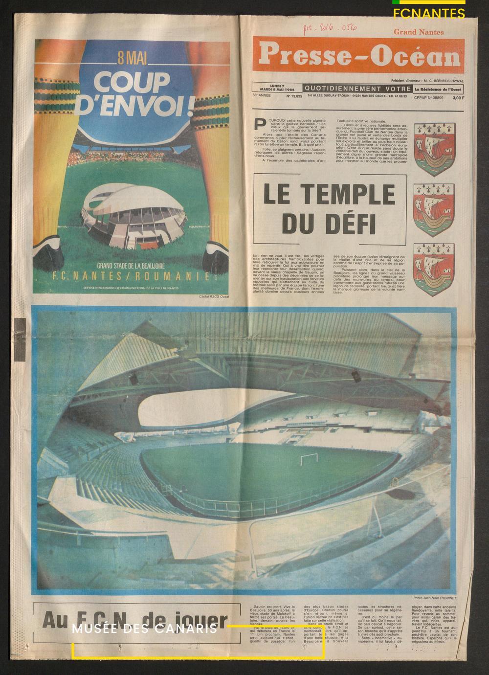 "Le Temple du Défi" : le quotidien nantais, "Presse Océan" sort un numéro spécial pour le match d'inauguration du tout nouveau stade de La Beaujoire.