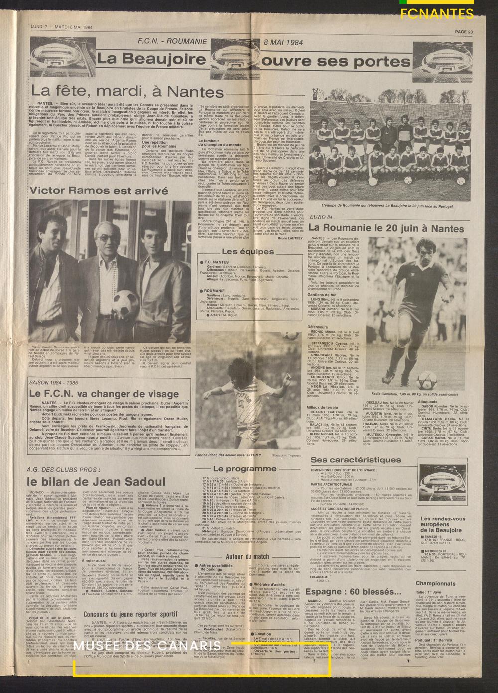 C'est l'équipe nationale de Roumanie qui est la première équipe à fouler la pelouse de La Beaujoire.
