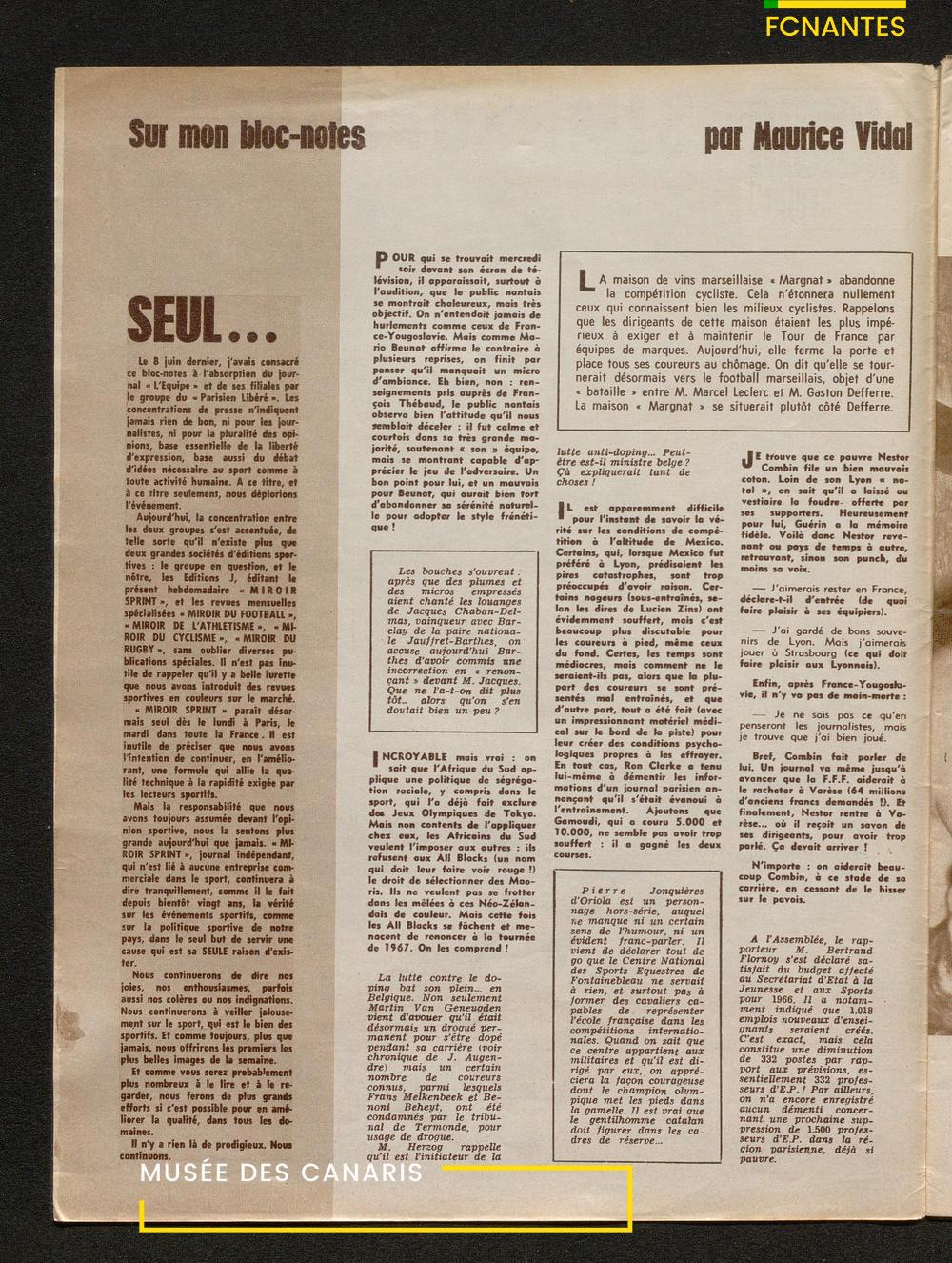 En titre du journal : "Nantes c'est vraiment du sérieux"