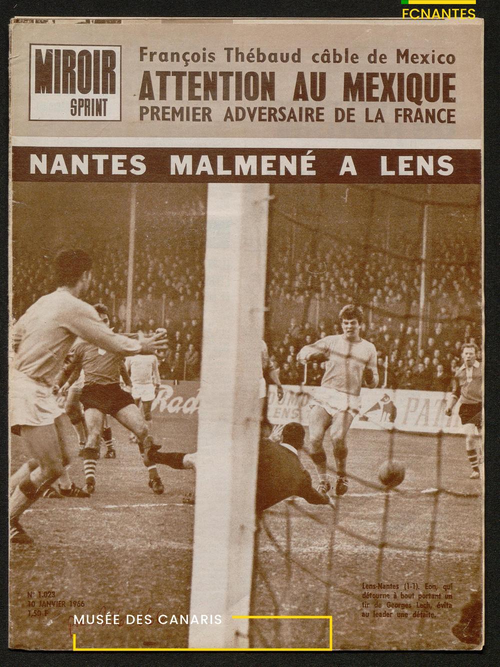 En titre : "Nantes malmené à Lens", avec Georges Grabowski, Gaby de Michèle et Daniel Eon en action.