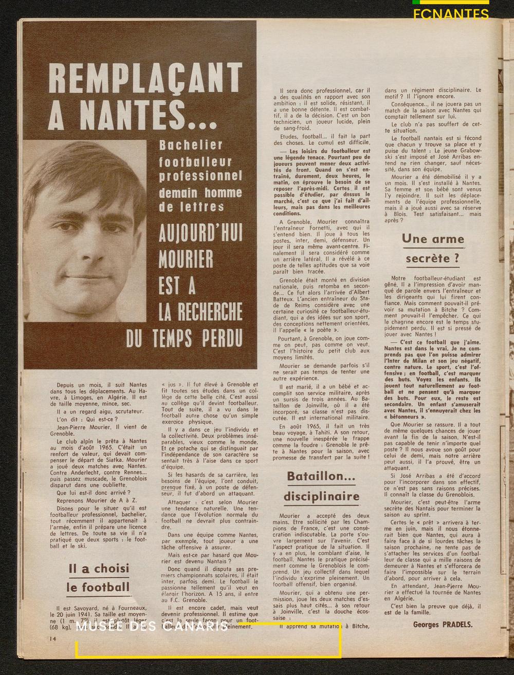 Portrait de Jean Pierre Mourier, footballeur nantais et bachelier.