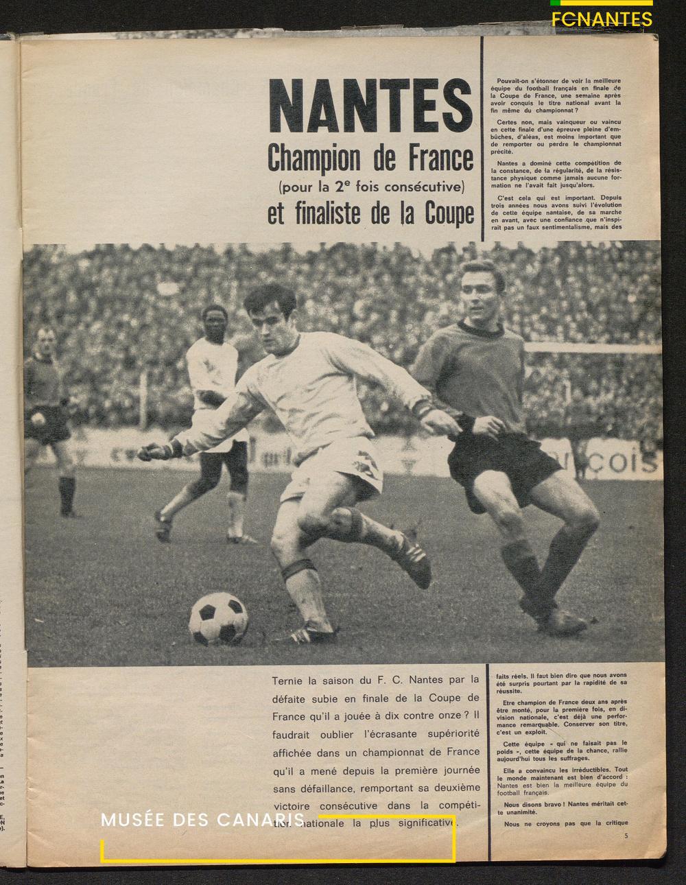En titre : "Nantes champion de France et la Coupe à Strasbourg"