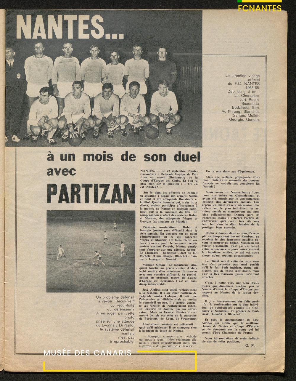 Début de la saison 1965/1966 : "Prêts pour le Coupe d'Europe", avec Jean Claude Suaudeau, Daniel Eon et Jacky Simon en photo.