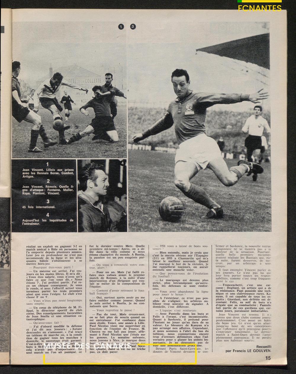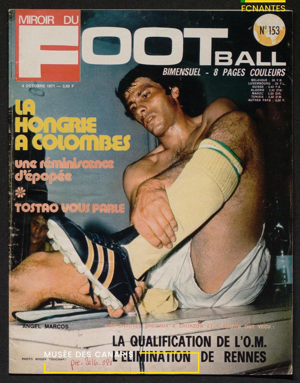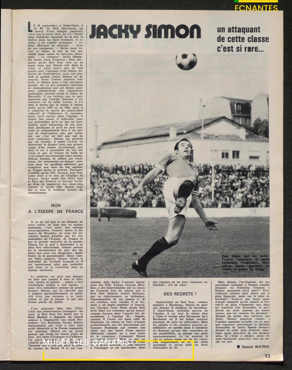 Articles écrits sur Jacky Simon et Jean Vincent, avec Angel Marcos en couverture du Miroir du Football du 4 octobre 1971