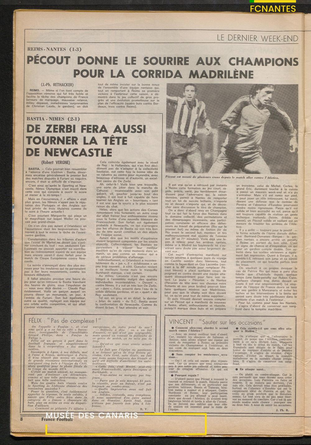 L'hebdo titre sur le match retour des Nantais, face à l'Atletico Madrid, après avoir fait match nul à l'aller, avec le but de Guy Lacombe, que l'on voit en couverture avec Van Straelen et Tusseau.
