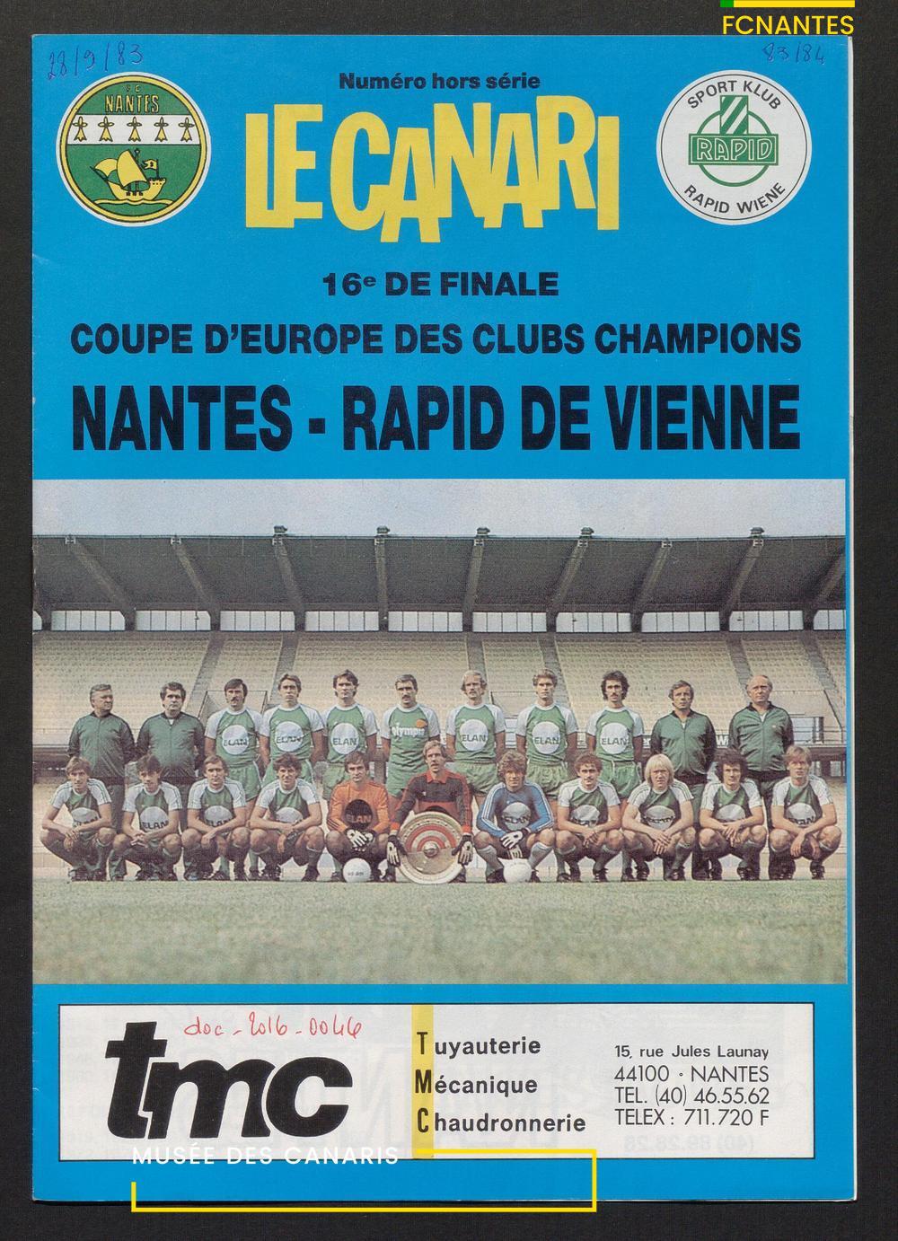 Le magazine officiel du FCN "Le Canari" sort son numéro lors du match de Coupe d'Europe des Clubs Champions, face au Rapid de Vienne.