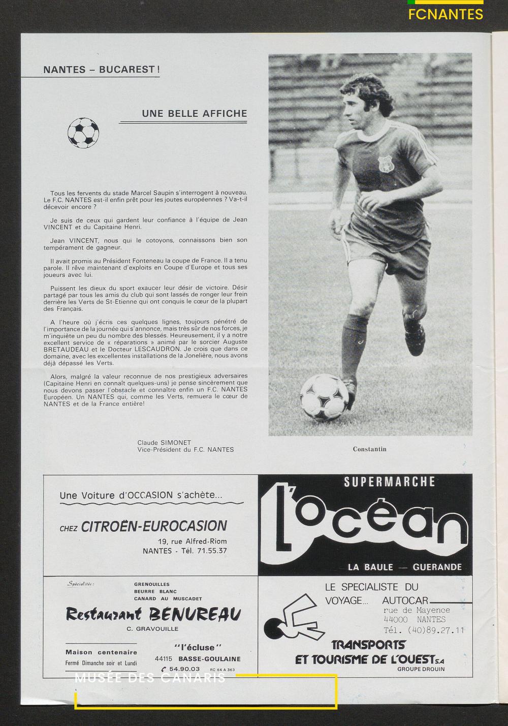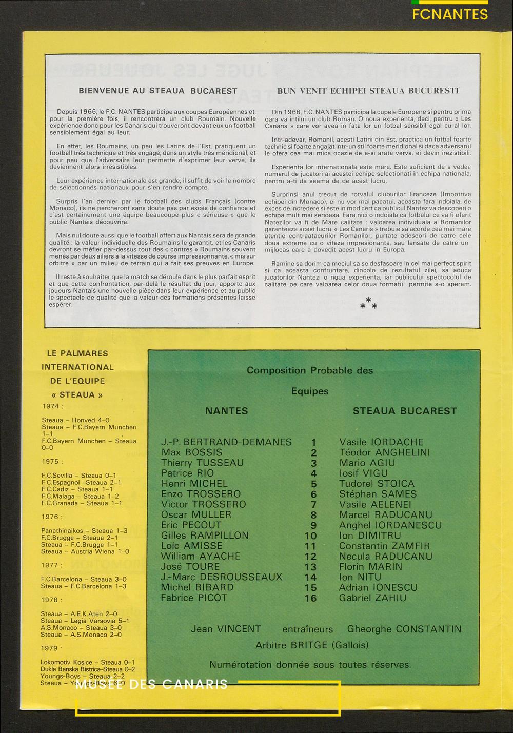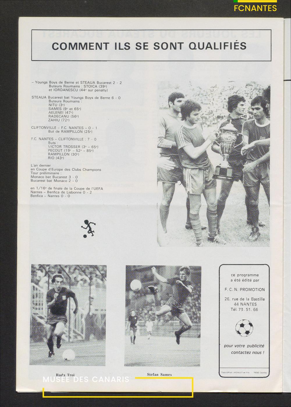 Le magazine "Le Canari" sort un numéro spécial pour la rencontre aller, de coupe des coupes au stade Marcel Saupin face au Steaua Bucarest.