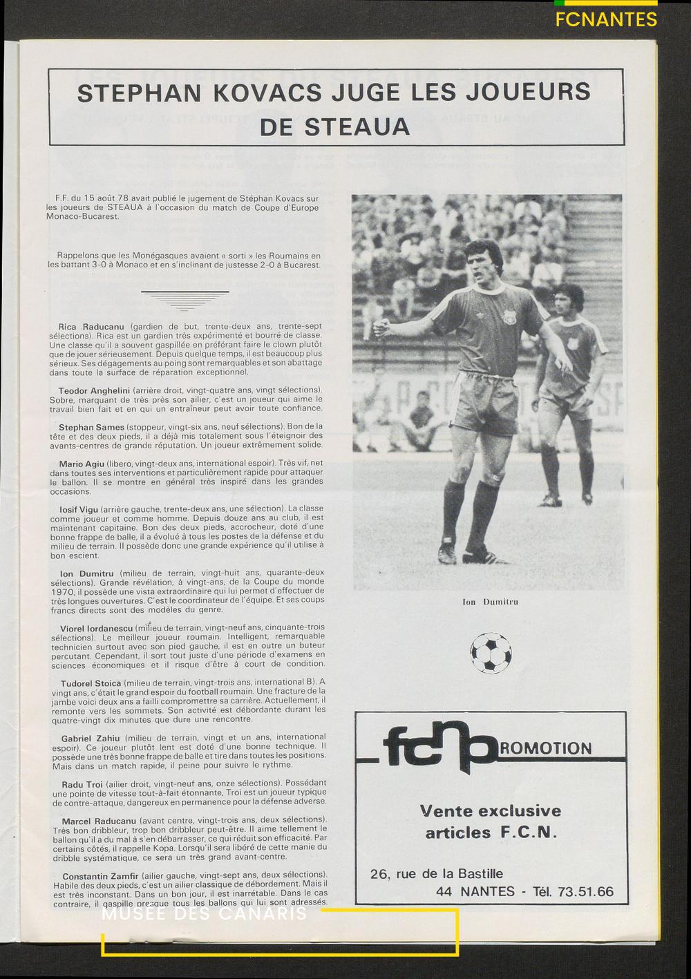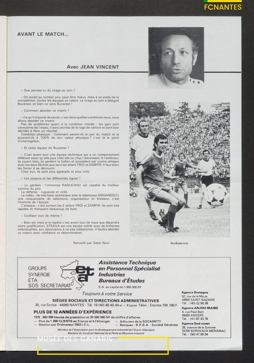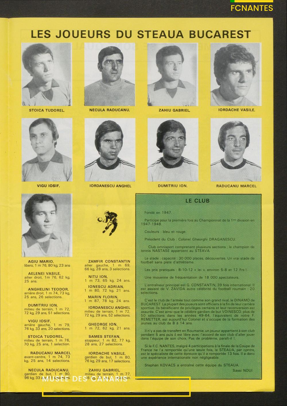 Le magazine "Le Canari" sort un numéro spécial pour la rencontre aller, de coupe des coupes au stade Marcel Saupin face au Steaua Bucarest.