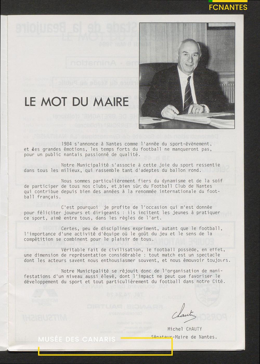 Mot du maire Michel Chauty et mot du président Louis Fonteneau.